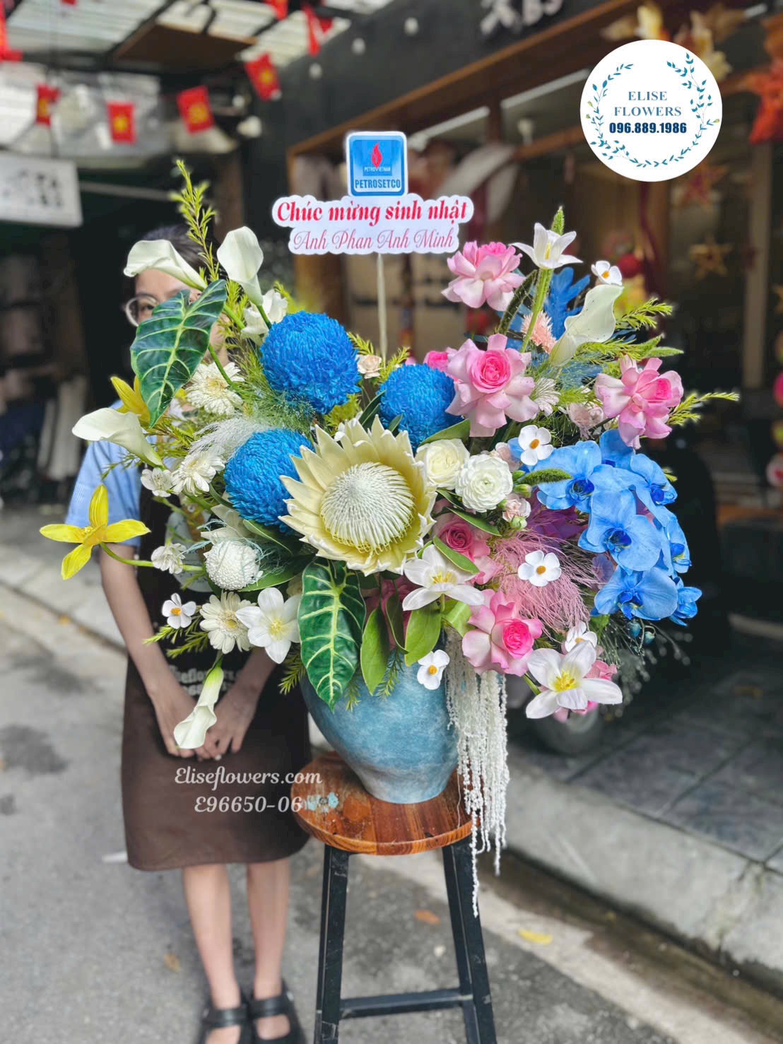 Bình hoa sinh nhậ tone xanh blue. CLICK VÀO ĐÂY ĐỂ XEM