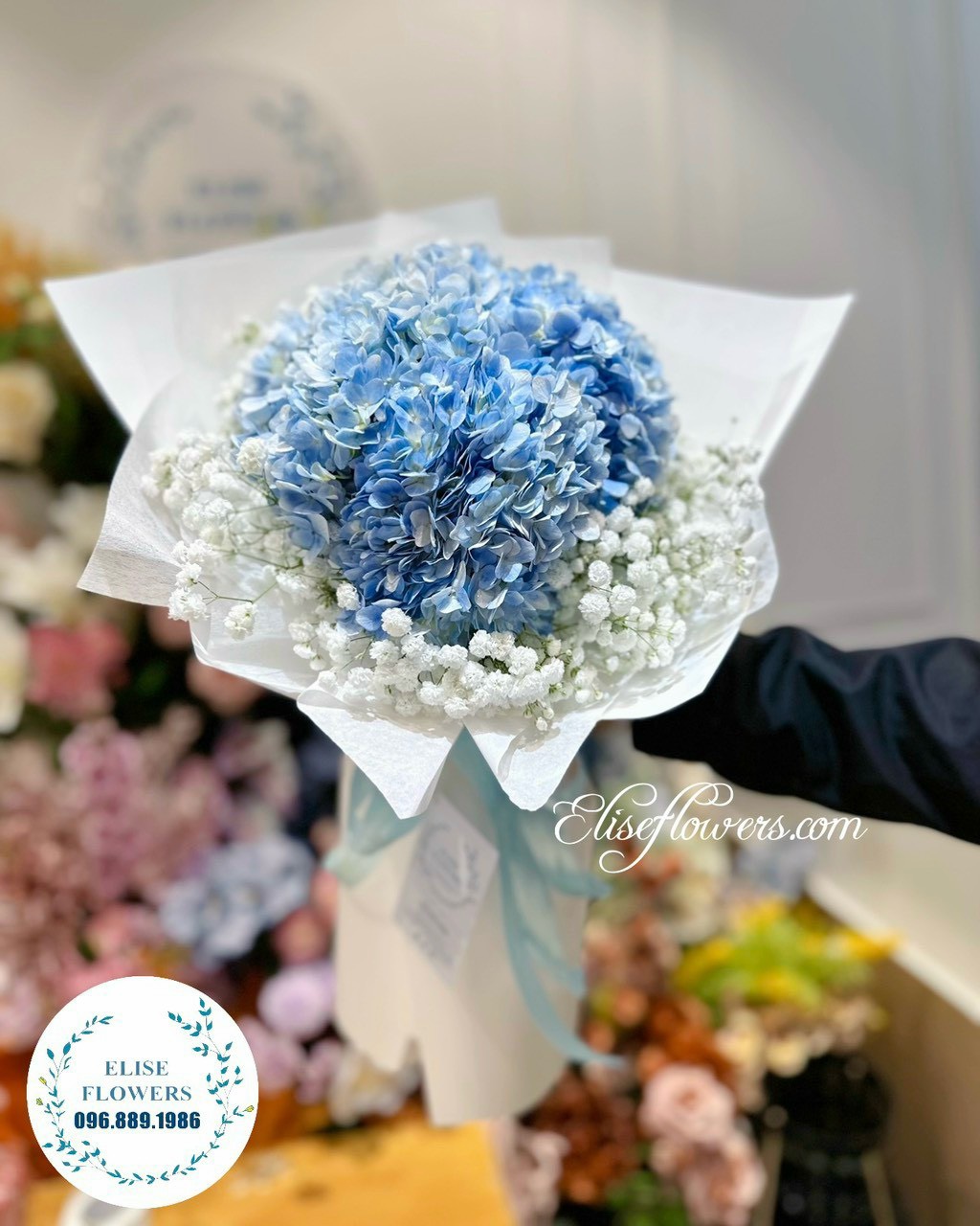 Vậy hãy tham khảo mẫu bó hoa cẩm tú cầu xanh dương mix baby trắng nhỏ xinh tại Tiệm hoa Eliseflowers bạn nhé !
