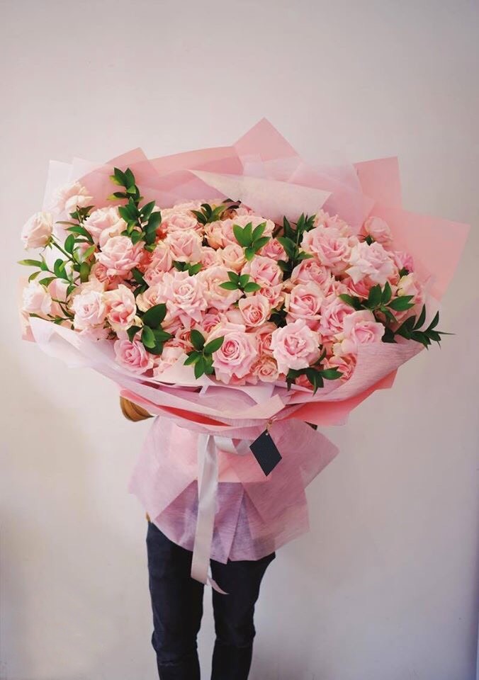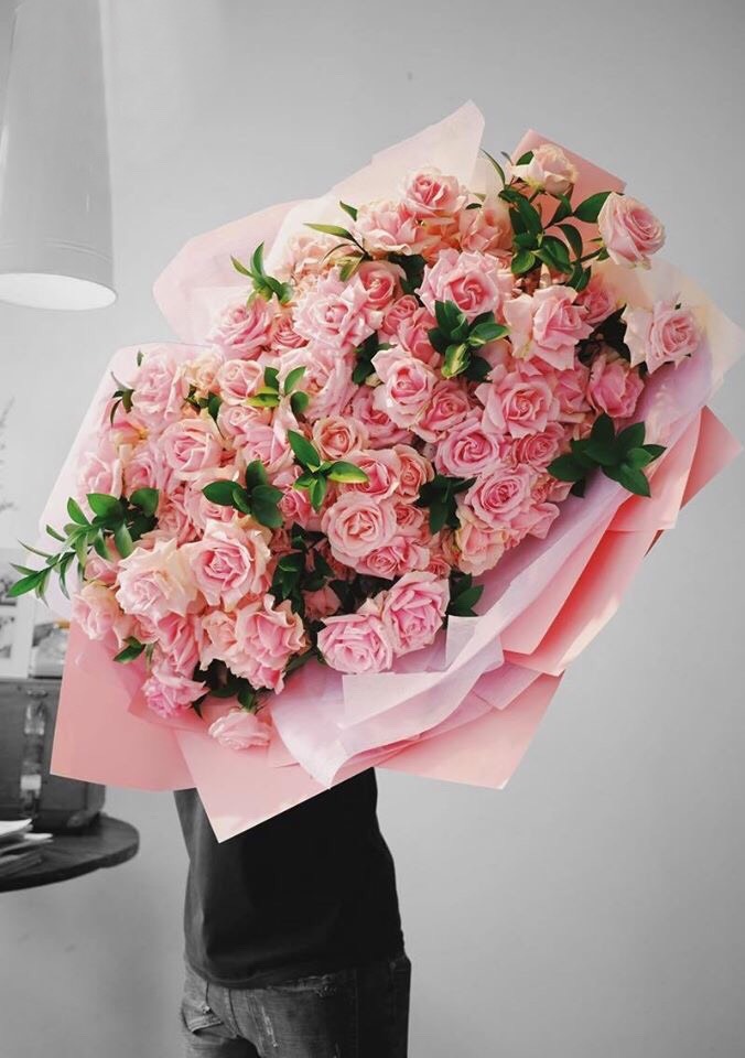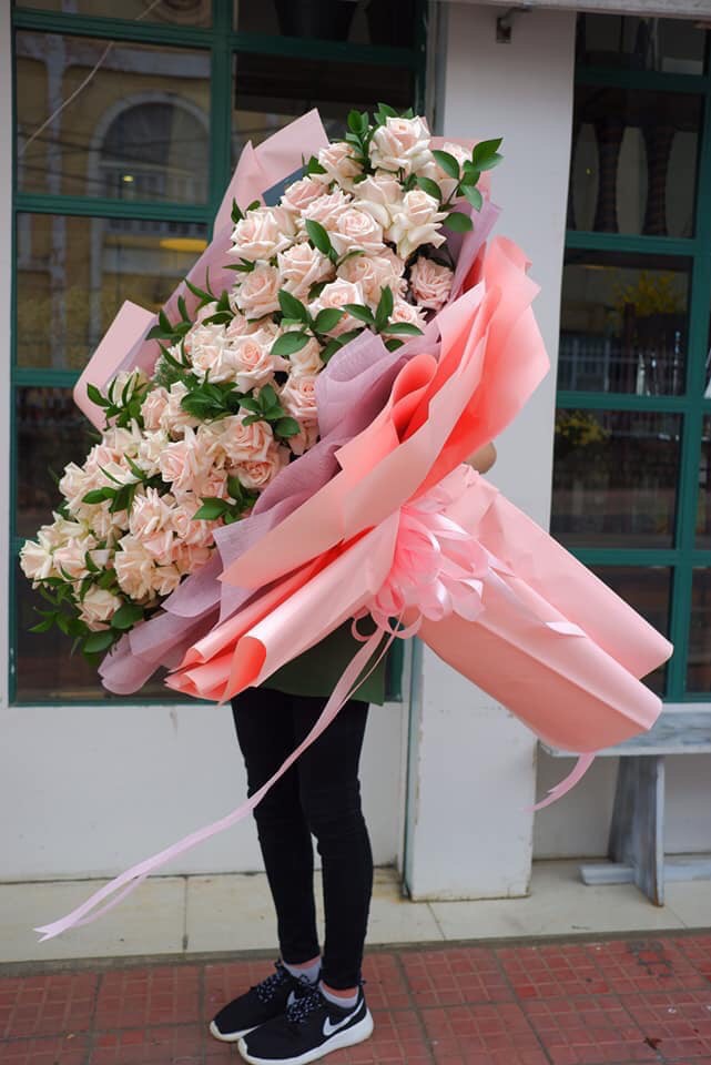 Một bó hoa hồng pastel sở hữu đến 200 bông to và hoành tráng nhất thì cần đến bàn tay khéo léo của người thợ lành nghề. Sắp xếp các bông hoa cẩn thận và tỉ mỉ để tạo thành khuôn bó hoa có đường vòng cung đẹp.