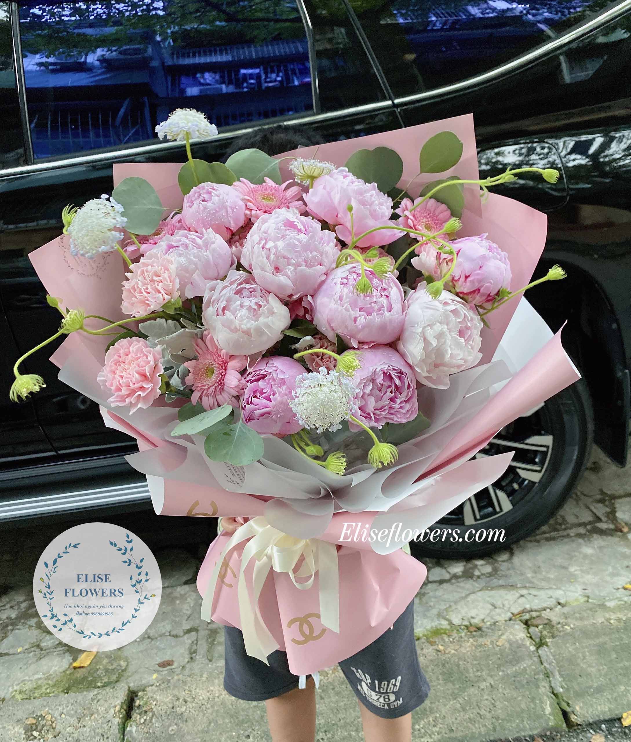 Bó hoa mẫu đơn hồng đẹp trang nhã tại Elise flowers - Shop hoa tươi Hà Nội.