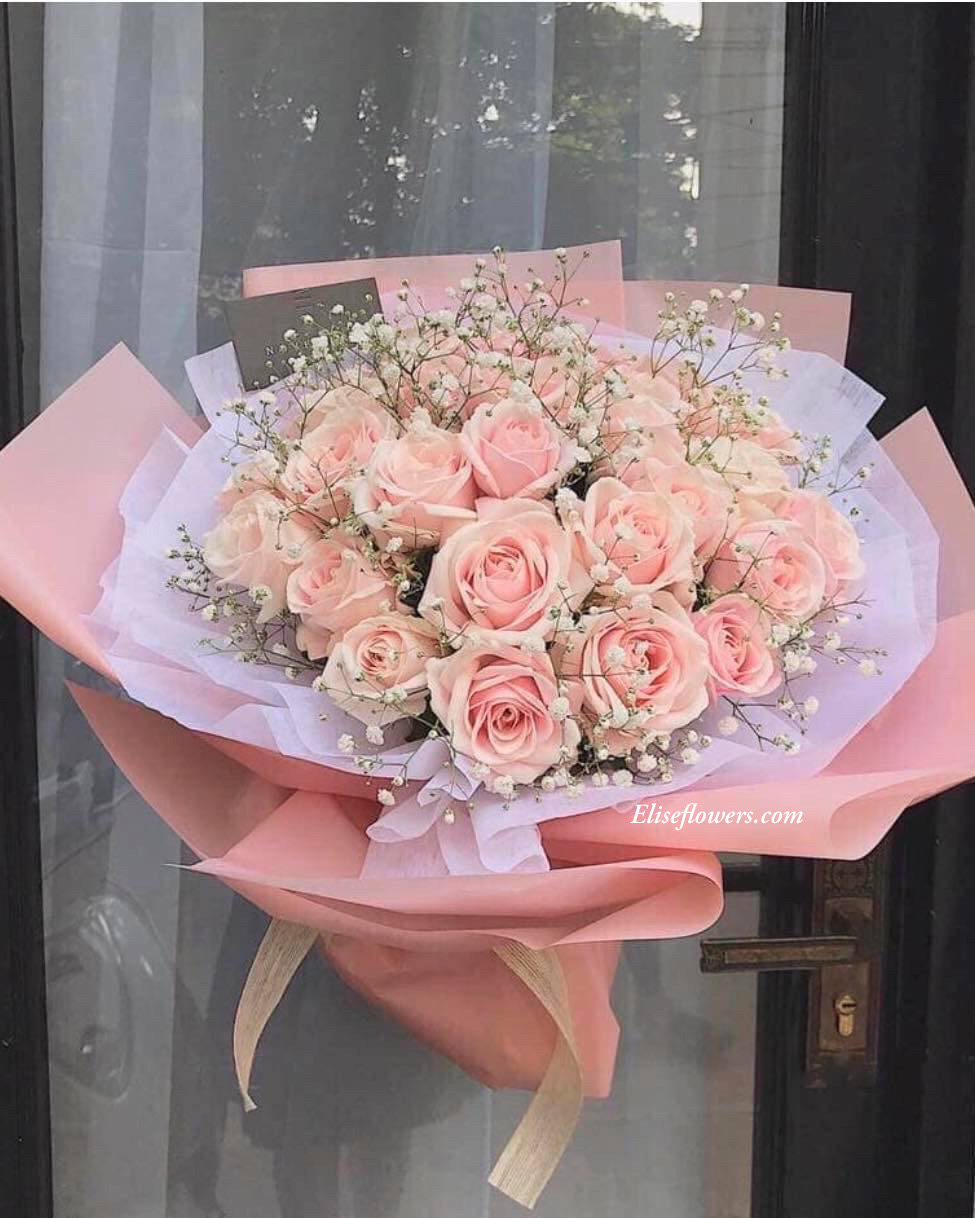 Bó hoa chúc mừng sinh nhật - hoa hồng hồng pastel mix baby trắng đẹp mộng mơ gồm có: