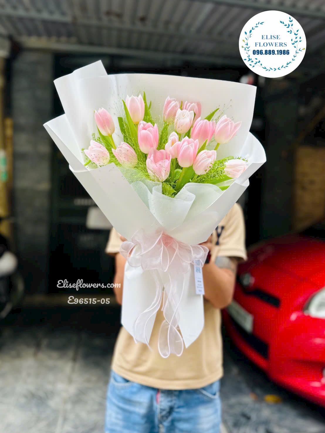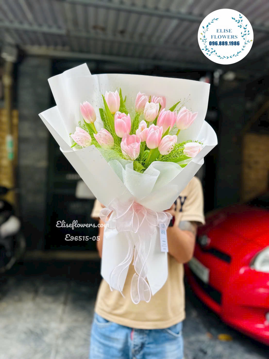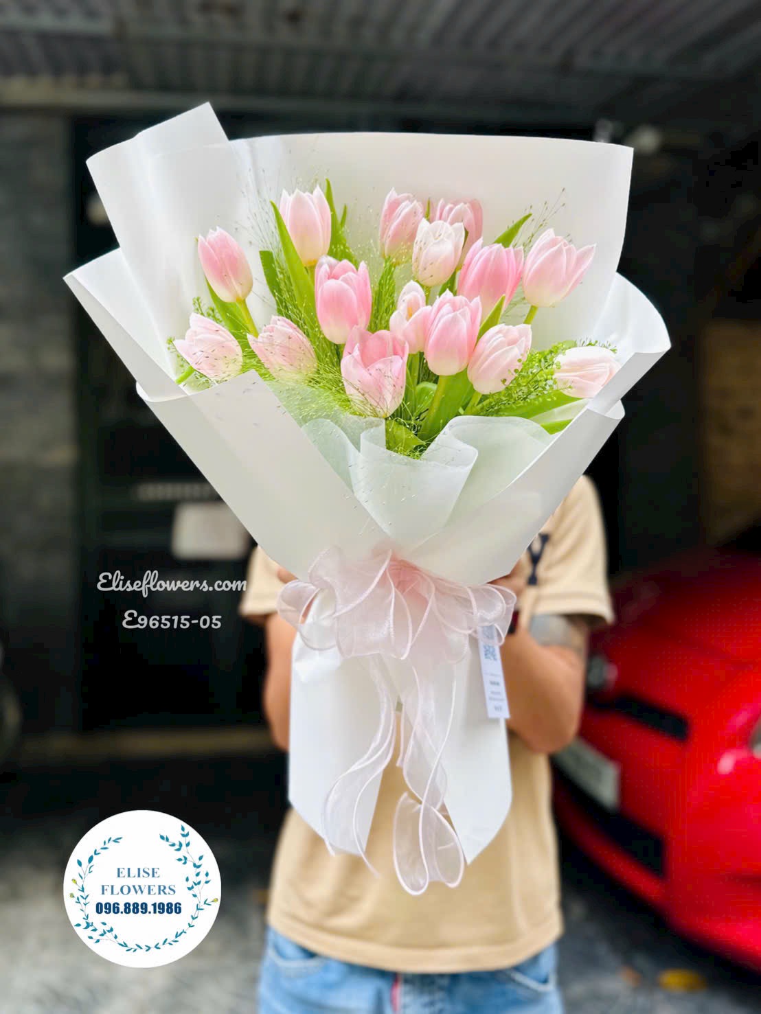 Hoa Tulip Hà Nội. Bó Tulip hồng nhẹ nhàng tặng bạn gái, người yêu 20/10. Eliseflowers