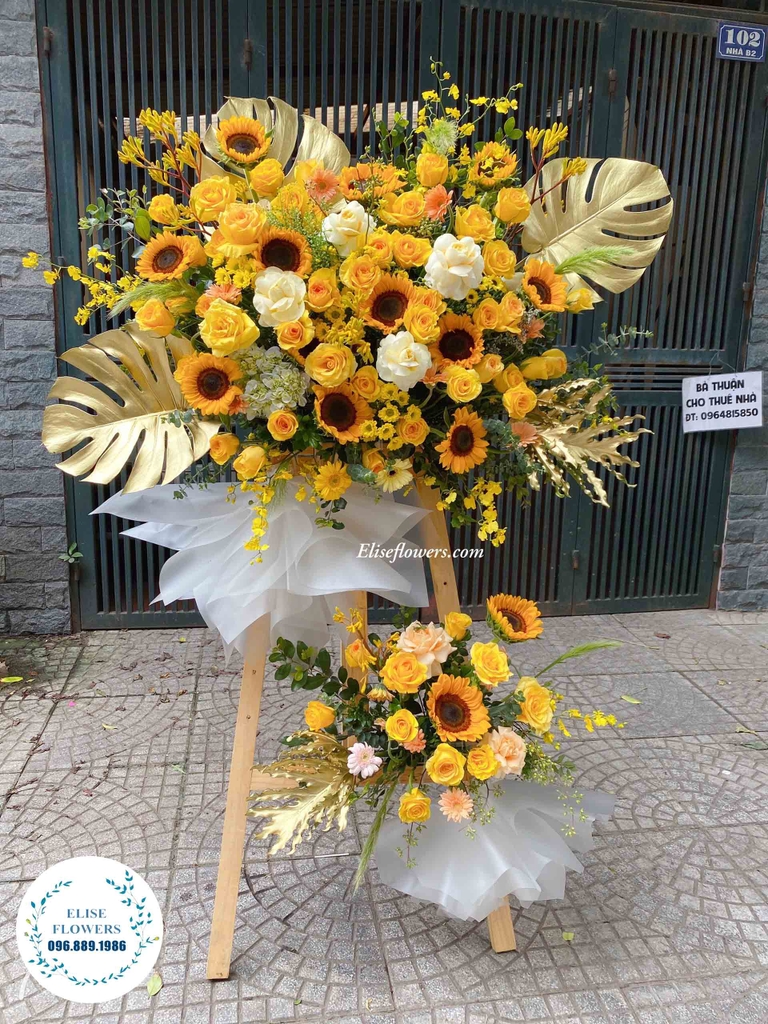 Cây hoa chúc mừng khai trương màu vàng đẹp tại Cầu Giấy Hà Nội - Eliseflowers.com