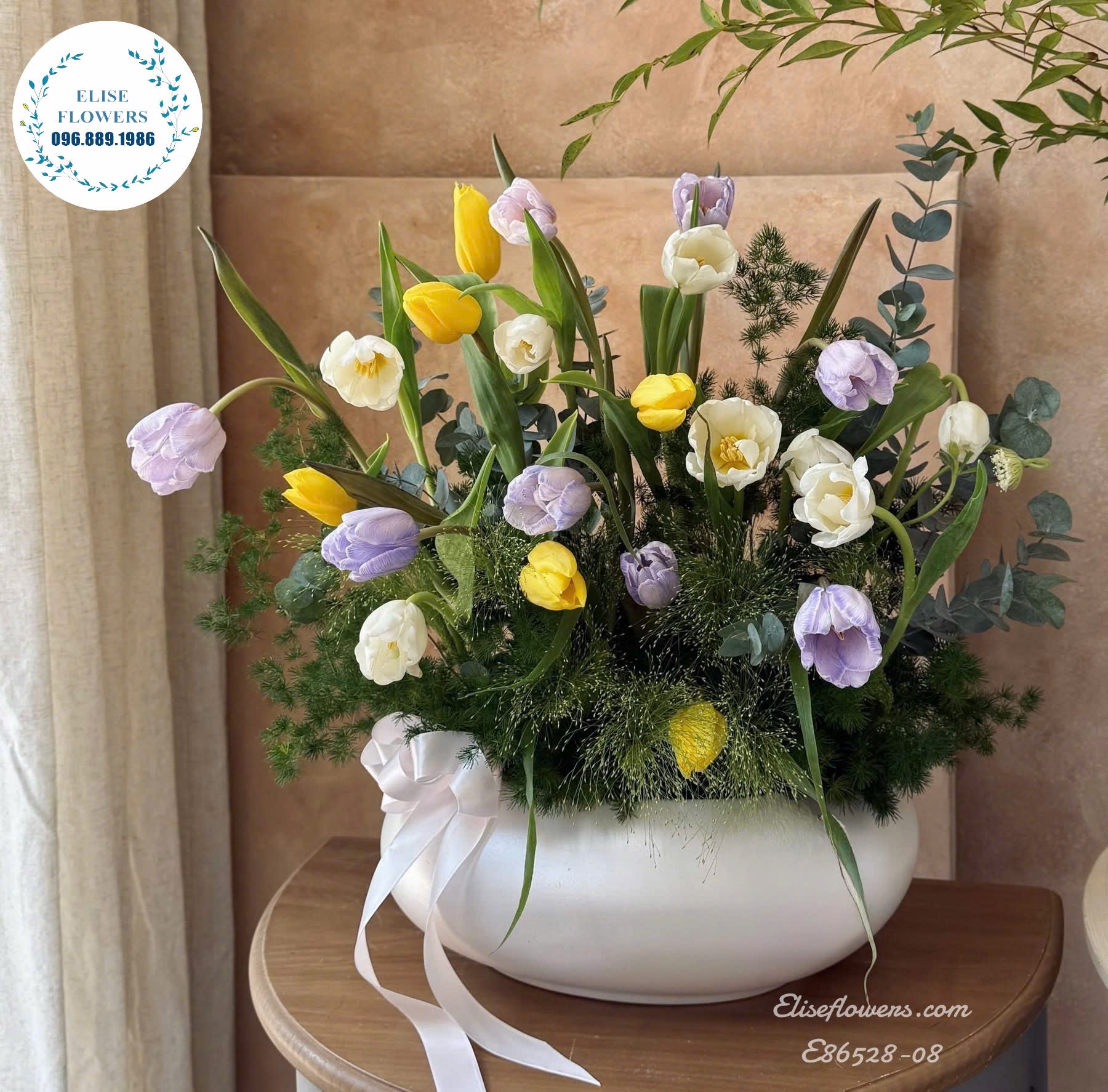Bạn đang tìm kiếm một món quà thanh tao, biểu tượng cho lòng biết ơn và tình yêu vĩnh cửu để dành tặng Mẹ yêu? Hãy để Chậu hoa Tulip phối màu tinh tế từ Elise Flowers thay bạn gửi gắm những lời chúc tốt đẹp nhất đến người phụ nữ tuyệt vời nhất cuộc đời mình tại khu vực Hà Đông.