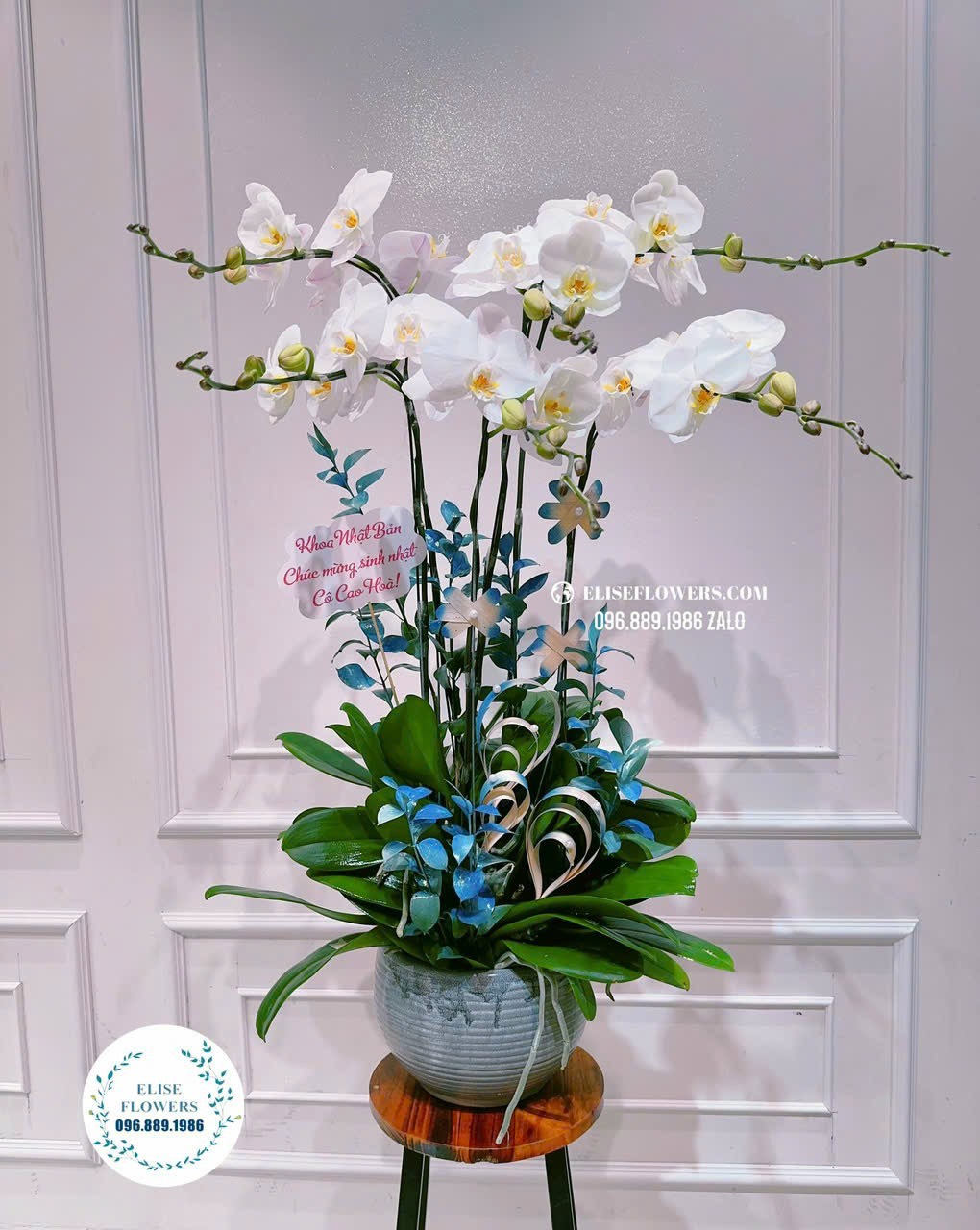 Chậu lan hồ điệp trắng cao cấp ở Hà Nội | Dịch vụ đặt hoa lan hồ điệp đẹp ở HÀ NỘI