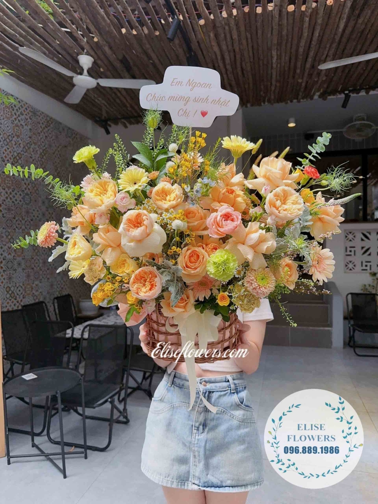Giỏ hoa chúc mừng sinh nhật chị, em gái. Hoa sinh nhật đẹp ở Hà Nội