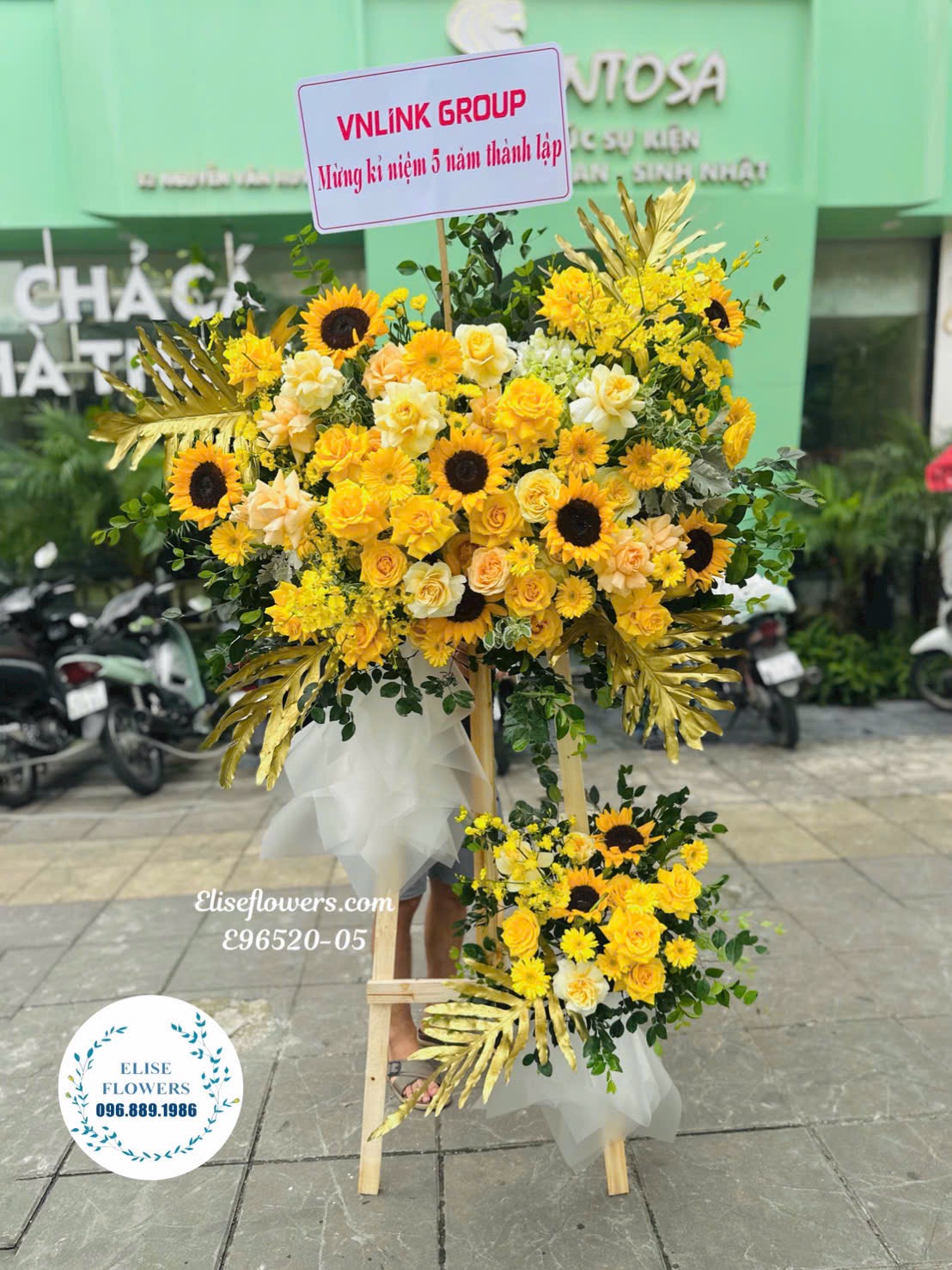 Eliseflowers hân hạnh giới thiệu bộ sưu tập hoa chúc mừng kỷ niệm thành lập công ty độc đáo, mang đến sự lựa chọn hoàn hảo để thể hiện sự trân trọng và chúc mừng một cách tinh tế. Trong số đó, bó hoa tone vàng phú quý nổi bật như một biểu tượng của sự thịnh vượng, may mắn và thành công rực rỡ