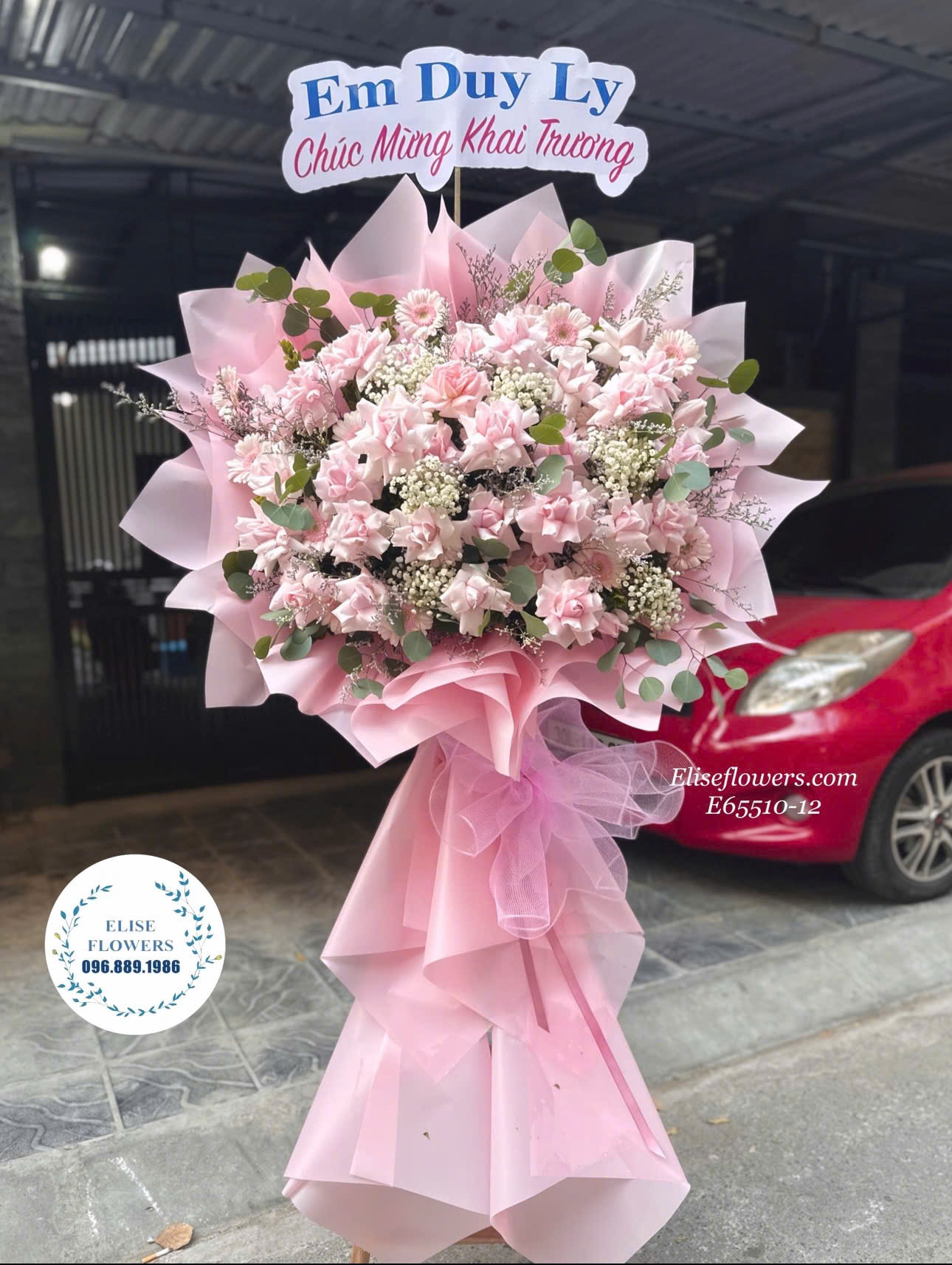 Kệ hoa chúc mừng khai trương tone hồng, phân khúc giá rẻ gồm có: