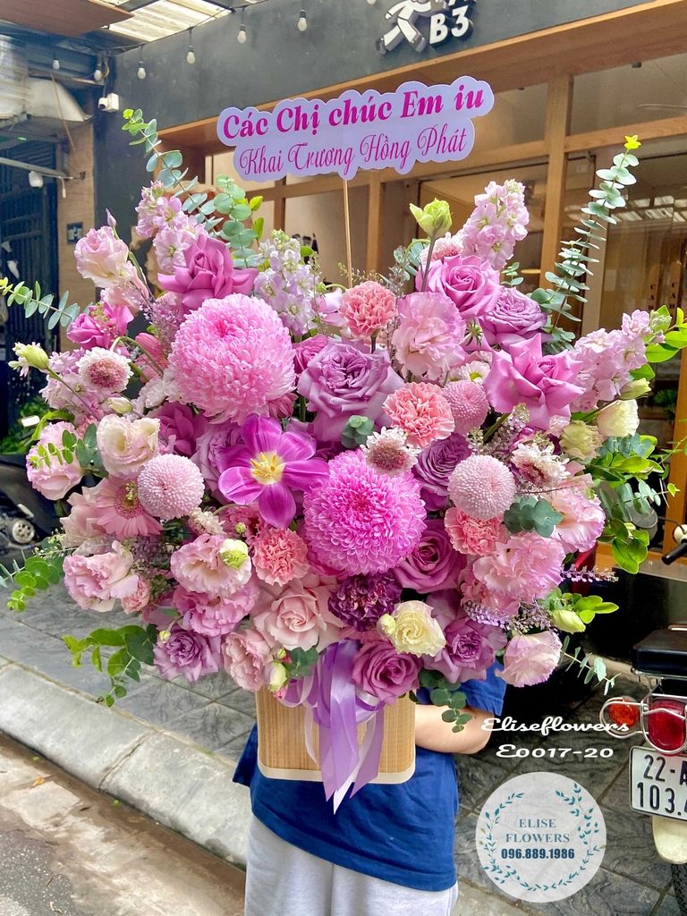 Lẵng hoa khai trương cao cấp tone tím hồng tại Cầu Giấy| Eliseflowers