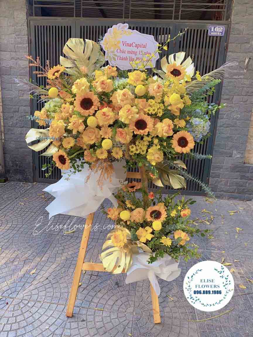 Kệ hoa màu vàng tươi sáng chúc mừng tân gia | Kệ hoa chúc mừng sang trọng, quý phái tại Eliseflowers
