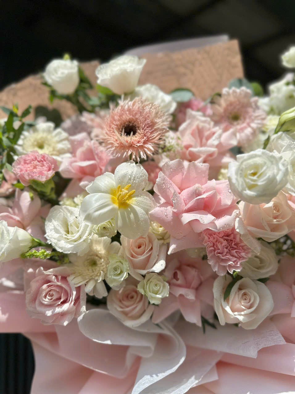 Bó hoa sinh nhật màu hồng phấn - trắng tinh tế, trang nhã. Hoa sinh nhật đẹp Cầu Giấy.