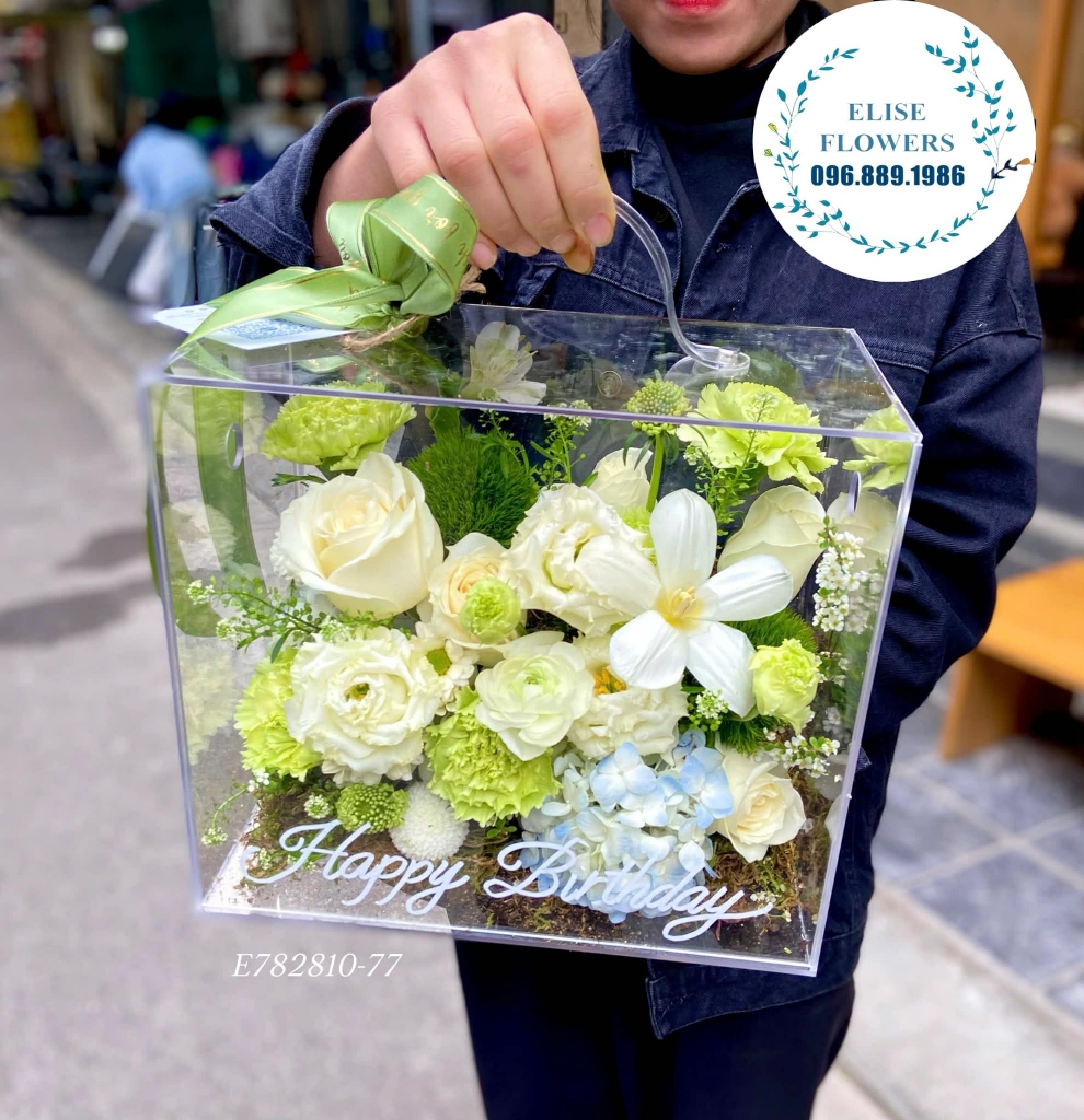 Hộp mica chúc mừng sinh nhật . Hộp hoa sinh nhật đẹp ở Hoàn Kiếm. Điện hoa tươi Eliseflowers