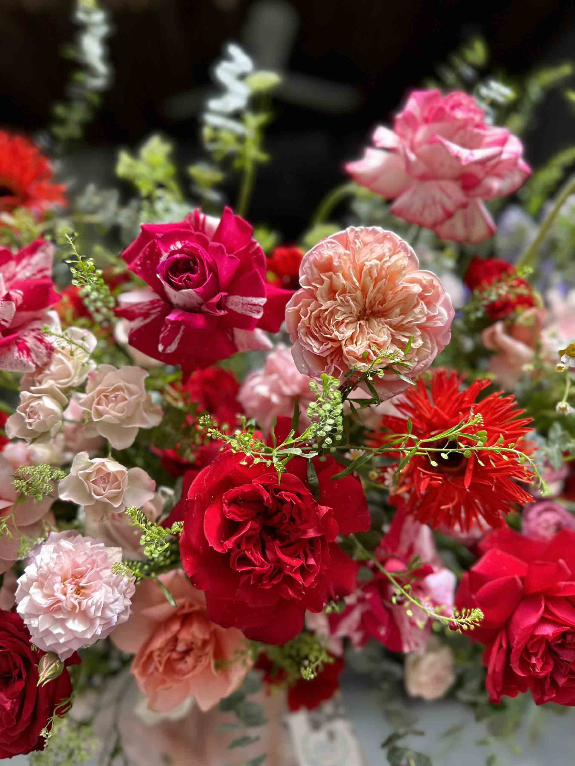 Kệ hoa mini tone đỏ chúc mừng sinh nhật, sự kiện, khai trương sang chảnh ở quận Hoàn Kiếm, Hà Nội.