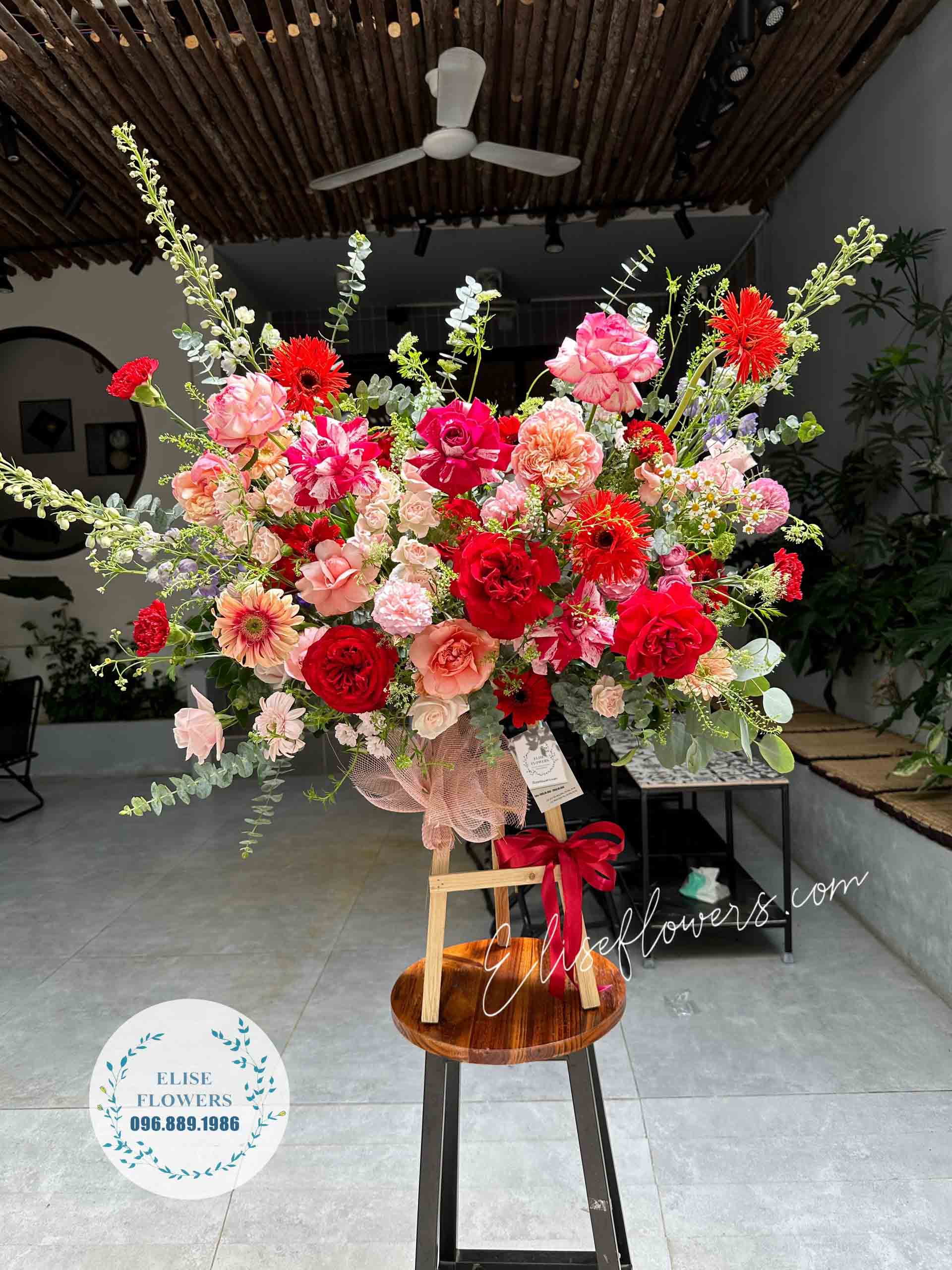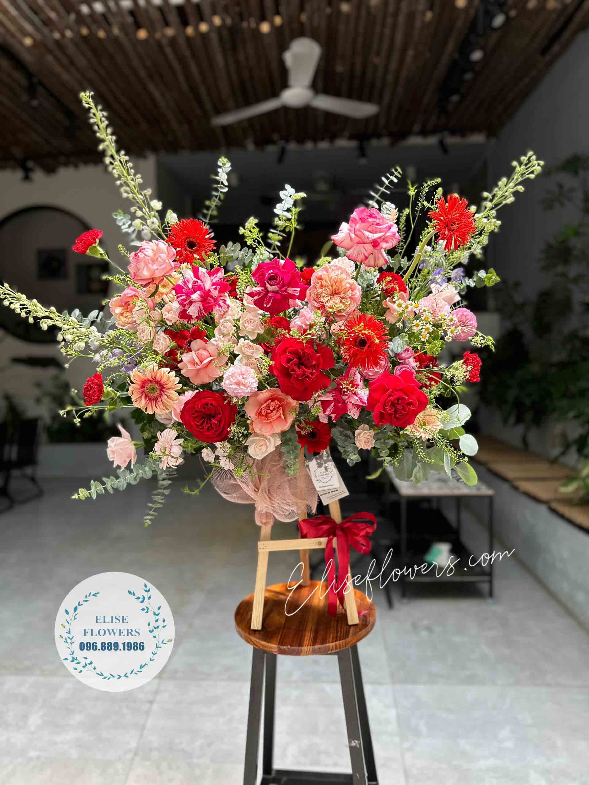 - Tất cả các lẵng hoa mừng khai trương cửa hàng, kỷ niệm ngày thành lập được Tiệm hoa Eliseflowers sử dụng hoa tươi mới và nguyên liệu đúng mẫu.