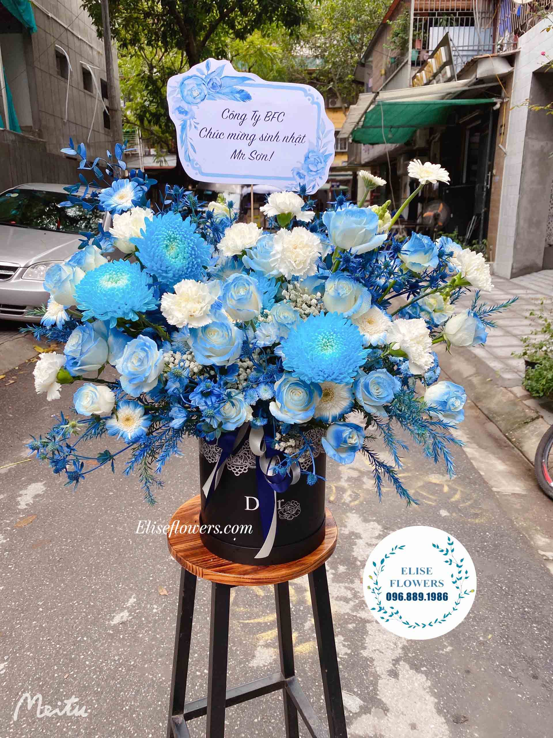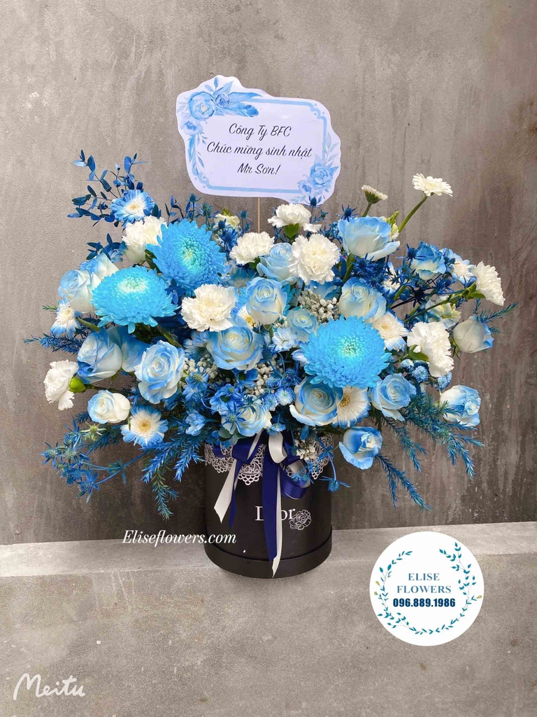 Mẫu hoa tặng sinh nhật sếp đẹp tại Eliseflowers | Hộp hoa xanh dương chúc mừng sinh nhật sếp nam đẹp ở Cầu Giấy