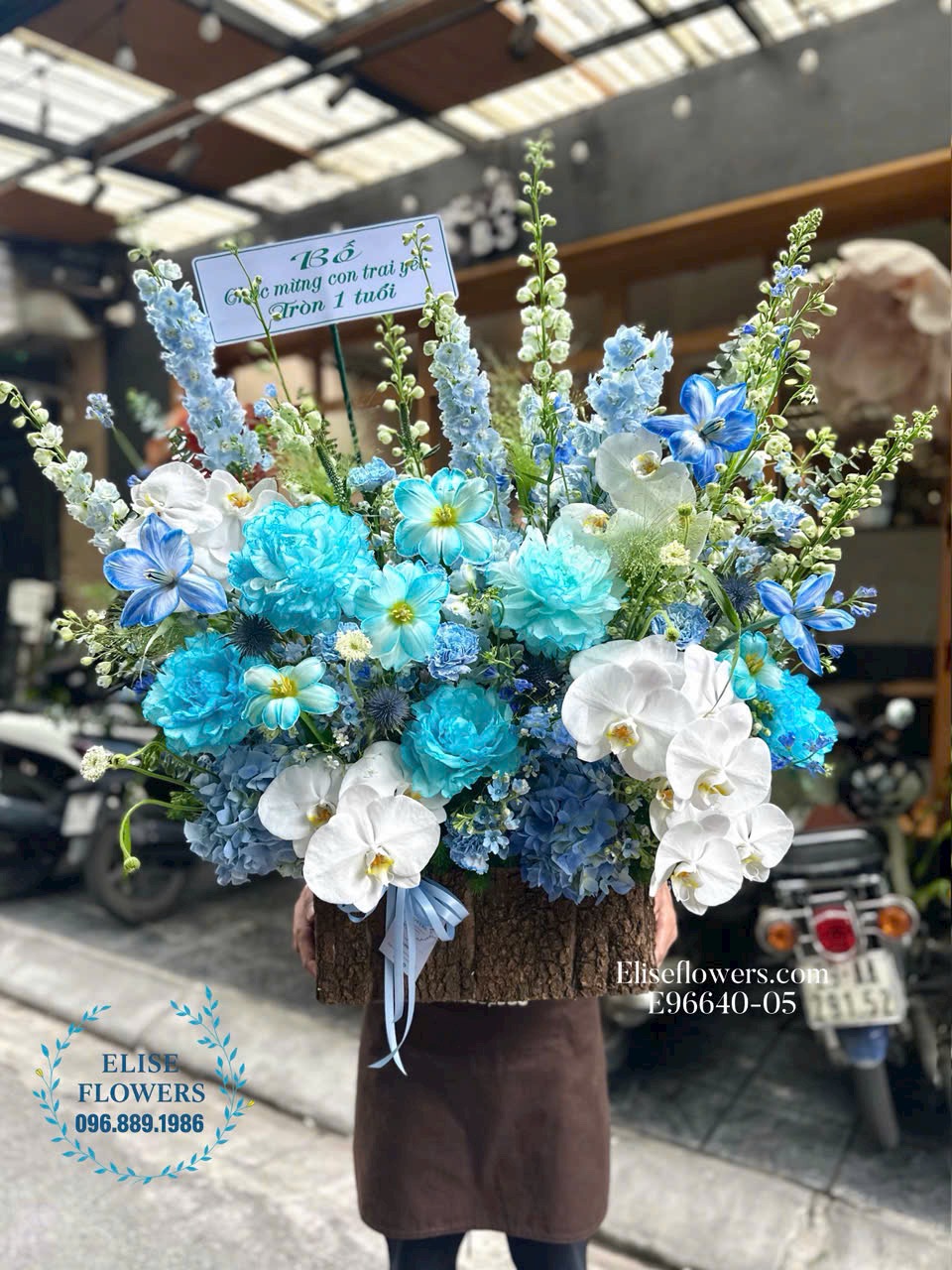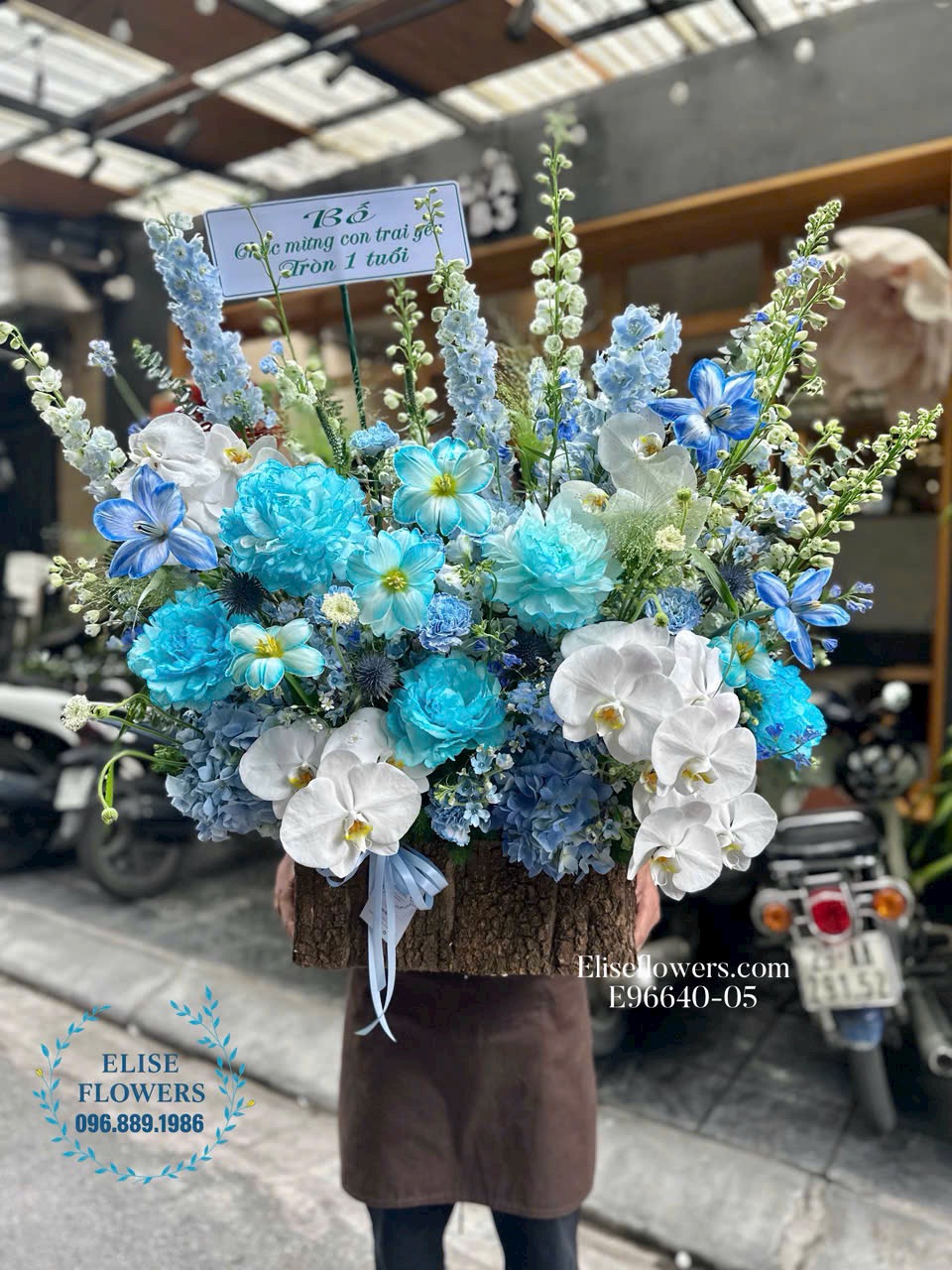 Eliseflowers hân hạnh giới thiệu Lẵng Hoa Xanh Dương Tặng Sếp Sang Trọng với vẻ đẹp đầy ấn tượng và những thông điệp ý nghĩa.