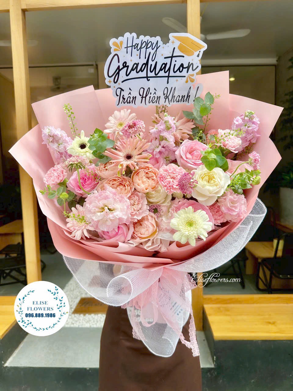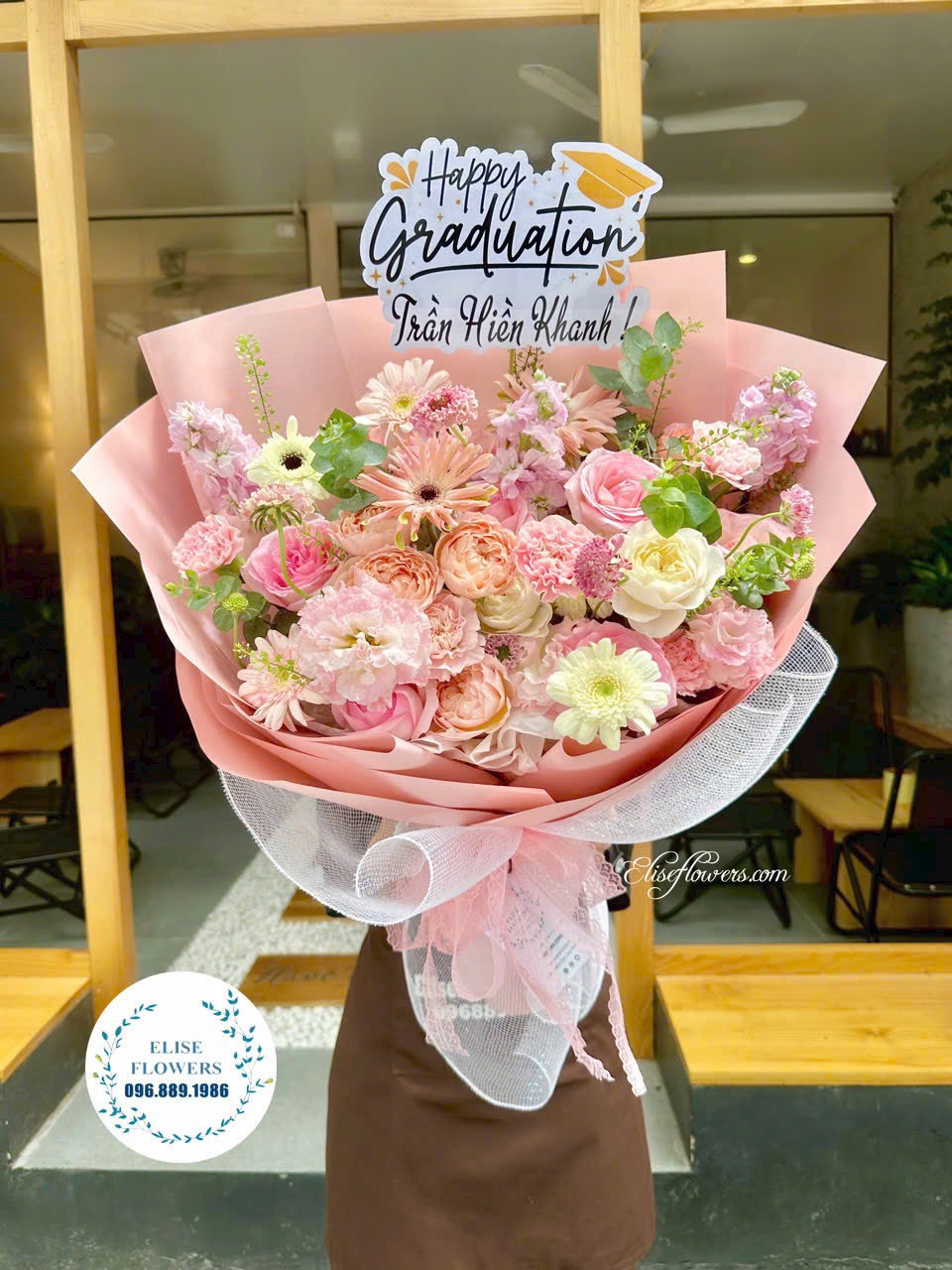 Tiệm hoa Eliseflowers nằm ở khu vực trung tâm quận Cầu Giấy nên rất gần các trường đại học ( Trường Đại học Sư phạm Hà Nội, Học viện Báo chí và Tuyên truyền, Đại học Quốc gia Hà Nội, Đại học Giao thông vận tải,...), các trường trung học,.... Do vậy, Tiệm hoa tươi Eliseflowers đảm bảo có thể phục vụ đặt hoa và giao hoa tận nơi, nhanh chóng nhất cho các quý khách hàng muốn đặt hoa tốt nghiệp.