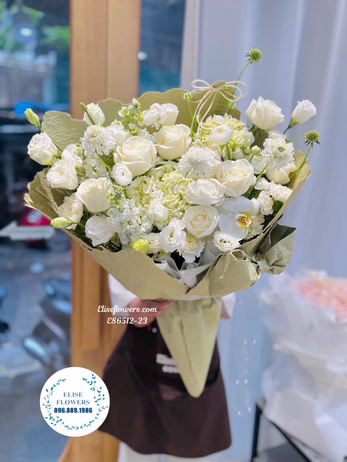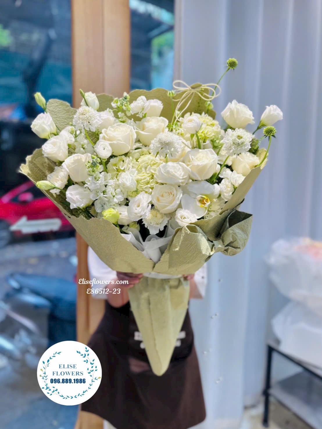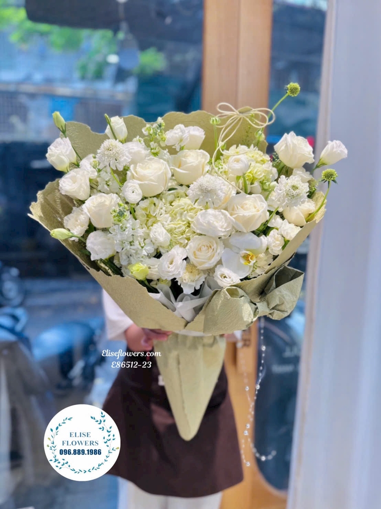 Bó hoa tone trắng cao cấp tặng sinh nhật| Eliseflowers