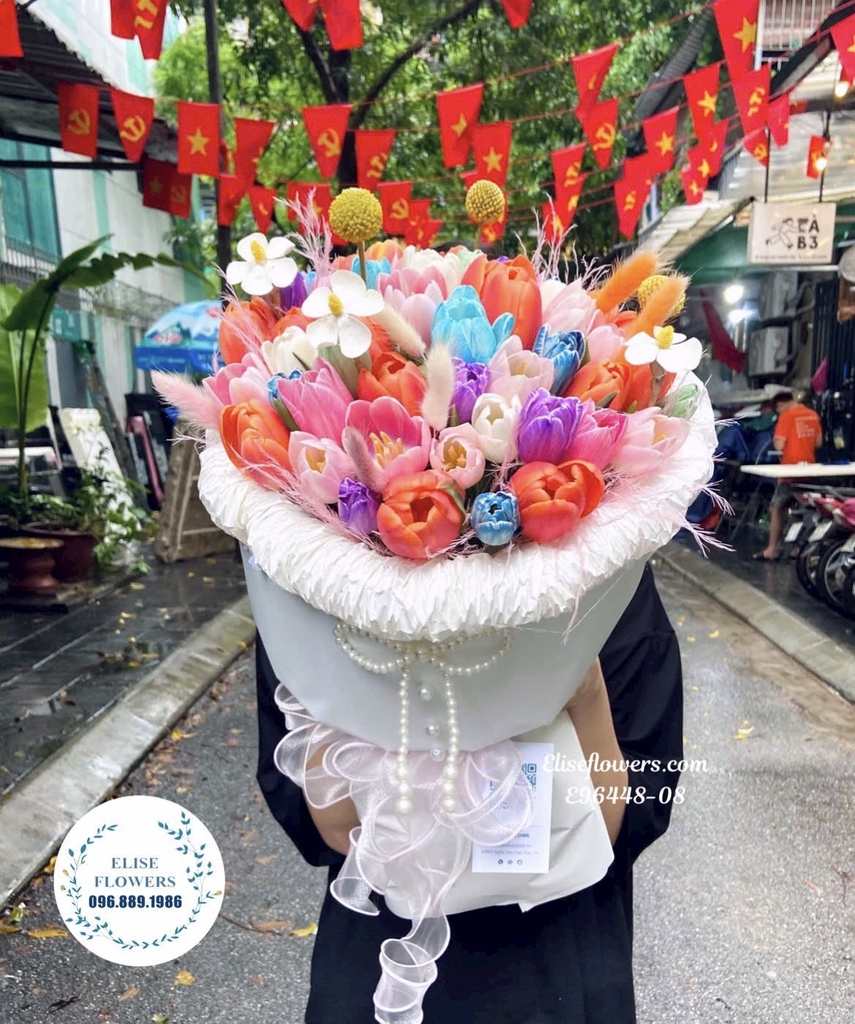 Hoa Tulip Hà Lan Giá Tốt Tại Cầu Giấy. Bó Hoa Tulip 50 Bông Mix Nhiều Màu - Món Quà Ngọt Ngào, Rực Rỡ Tặng Bạn Gái| Eliseflowers