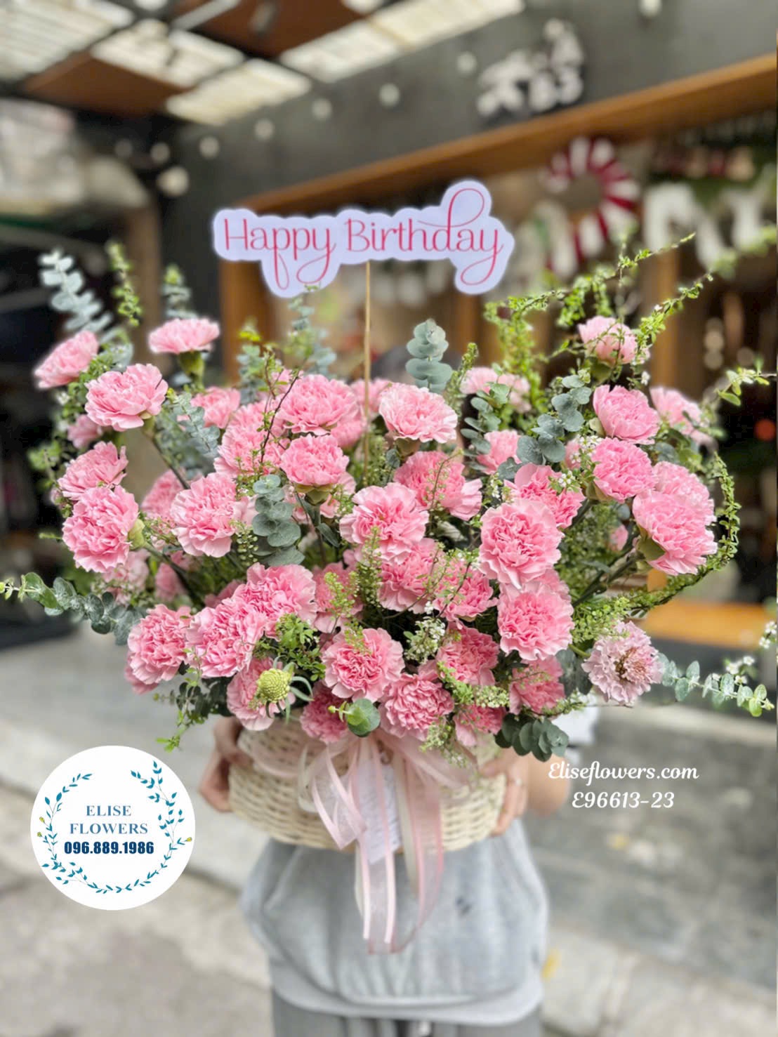 Lẵng cẩm chướng hồng tinh tế tặng thầy cô, giáo viên nhân ngày 20/11. Eliseflowers - Shop hoa tươi Hà Nội