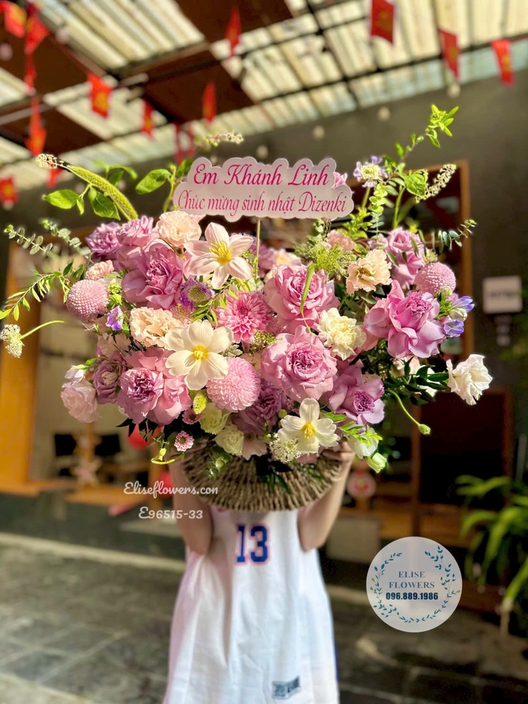 Lẵng hoa tone hồng cao cấp tặng mẹ 20/10| Eliseflowers
