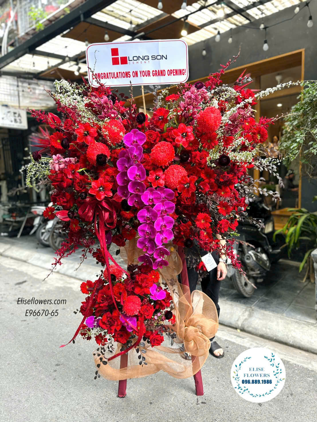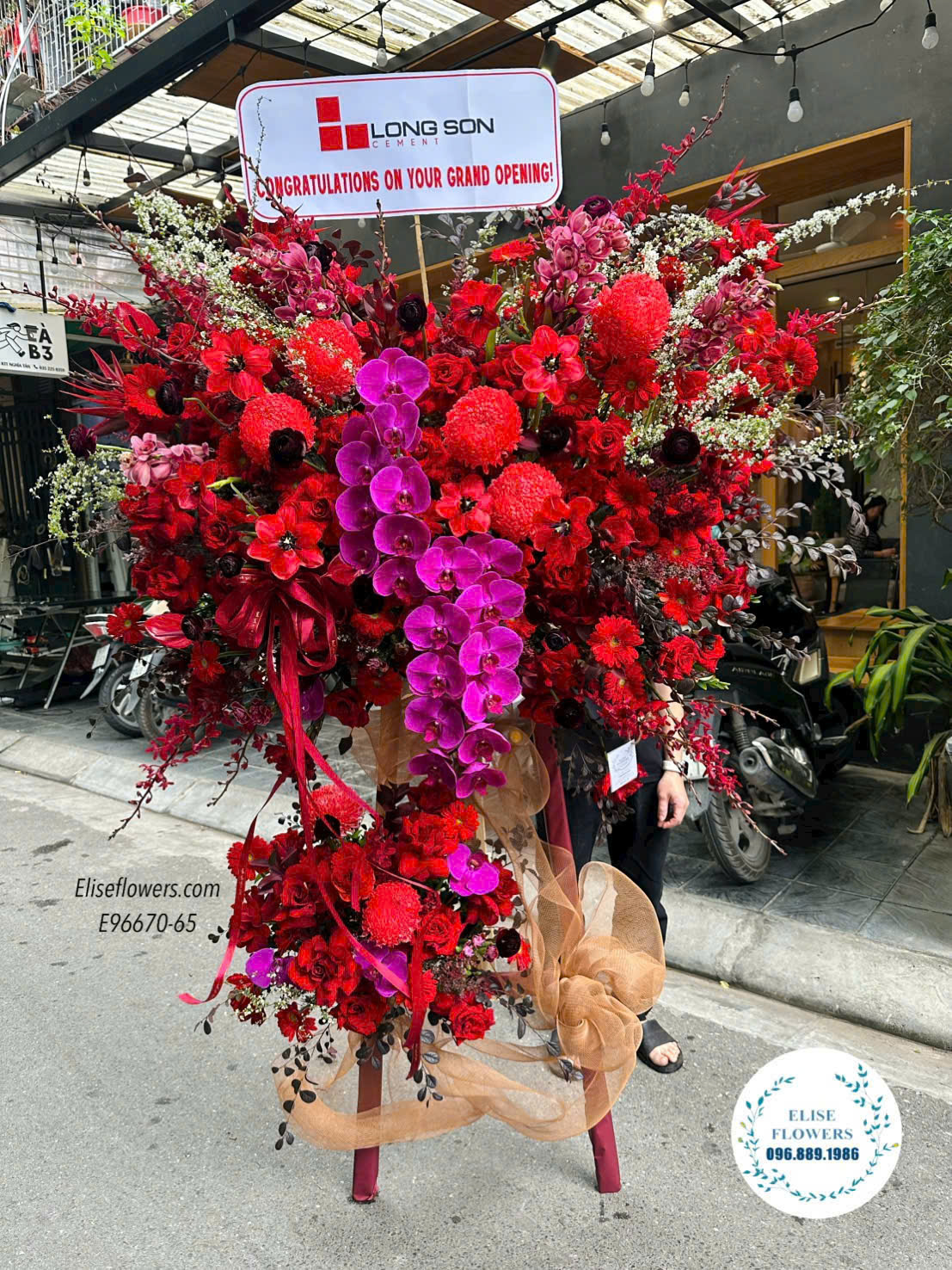 Ấn tượng đầu tiên trong ngày khai trương hay lễ ký kết chính là chìa khóa mở ra những cơ hội hợp tác bền vững. Một kệ hoa chúc mừng tone đỏ rực rỡ, điểm xuyết những nhành Lan Hồ Điệp Đà Lạt loại 1 kiêu sa không chỉ mang thông điệp về sự may mắn, phát tài mà còn thể hiện gu thẩm mỹ tinh tế và tầm vóc của người tặng. Tại Eliseflowers, mỗi kệ hoa là một lời chúc "Mã đáo thành công" được thiết kế riêng biệt để cùng bạn chinh phục những đối tác quan trọng nhất.