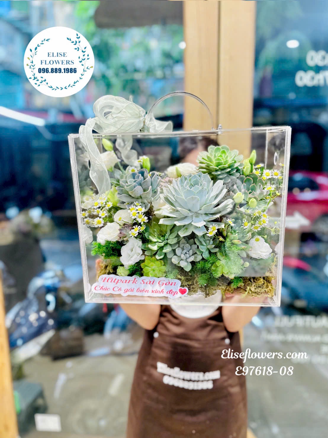 Hộp hoa sen đá đẹp từ Eliseflowers tại Hà Đông, với thiết kế hộp mica trong suốt kết hợp sen đá phong thủy, sẽ là lựa chọn hoàn hảo để gửi gắm tình cảm và lời chúc tốt đẹp. Khám phá ý nghĩa, cảm xúc và chất lượng vượt trội của hộp hoa sen đá này ngay hôm nay!