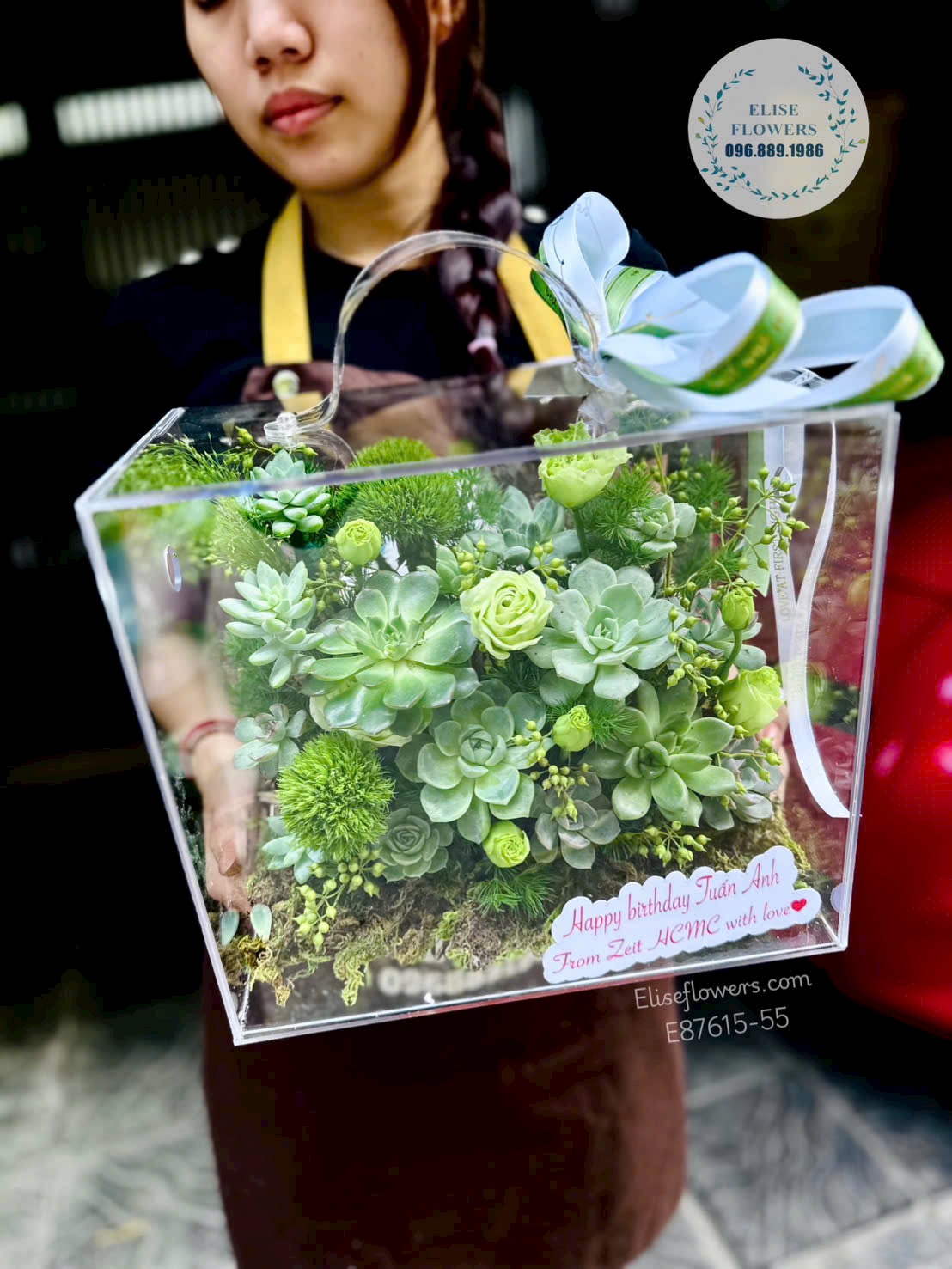 Hoa sinh nhật. Hoa tặng anh trai. Hộp hoa sen đá sinh nhật. Eliseflowers