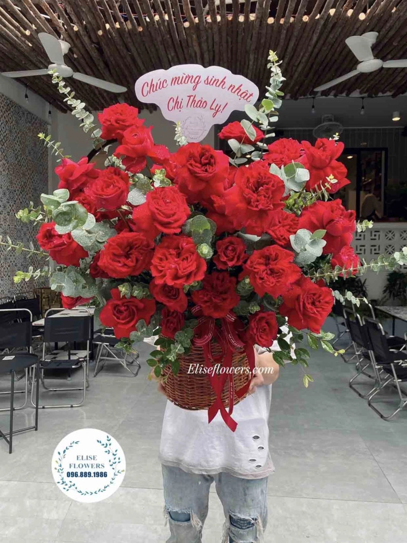 LẴNG HOA SINH NHẬT ĐẸP. Đặt lẵng hoa tone đỏ tặng sinh nhật chồng yêu