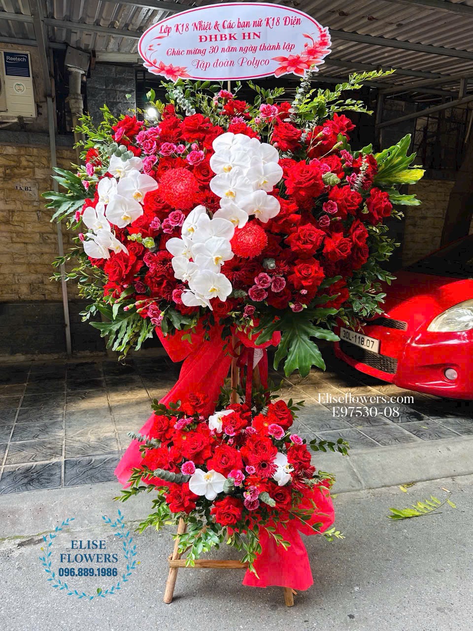 Kệ hoa đỏ chúc mừng kỷ niệm thành lập công ty. Kệ hoa cao cấp, sang trọng chúc mừng sự kiện ở Hà Nội. Mua kệ hoa chúc mừng kỉ niệm thành lập công ty đẹp tại Hà Nội. Dịch vụ đặt - giao kệ hoa nhanh chóng, tận nơi. Điện hoa chúc mừng uy tín - Eliseflowers.