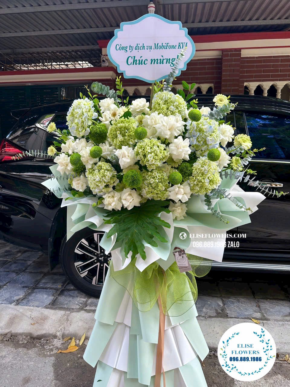 Ý nghĩa kệ hoa chúc mừng sự kiện tone xanh lá :