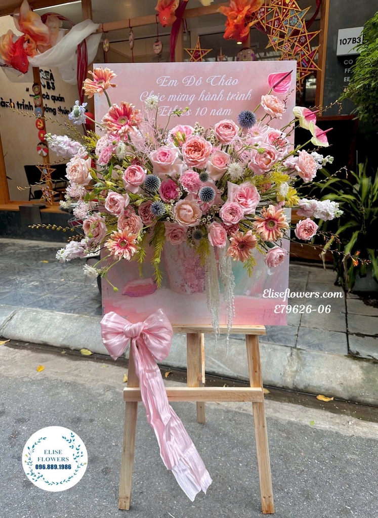 Kệ khung tranh tone hồng sang trọng mừng kỉ niệm thành lập| Eliseflowers