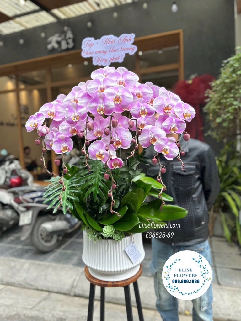 Chúc mừng khai trương là dịp quan trọng để gửi gắm những lời chúc may mắn và thịnh vượng. Chậu Lan Hồ Điệp tím khai trương sang trọng từ Elise Flowers là sự lựa chọn đẳng cấp tại khu vực Ba Đình, mang đến vẻ đẹp vương giả và ý nghĩa phong thủy sâu sắc cho không gian sự kiện.