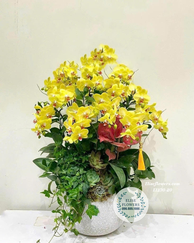 Chậu lan hồ điệp vàng cao cấp này không chỉ là một món quà Tết ý nghĩa mà còn là điểm nhấn sang trọng, mang lại tài lộc và may mắn cho gia đình bạn. Hãy để sắc vàng của lan hồ điệp thắp lên niềm hân hoan, hy vọng cho một năm mới an lành, thịnh vượng.