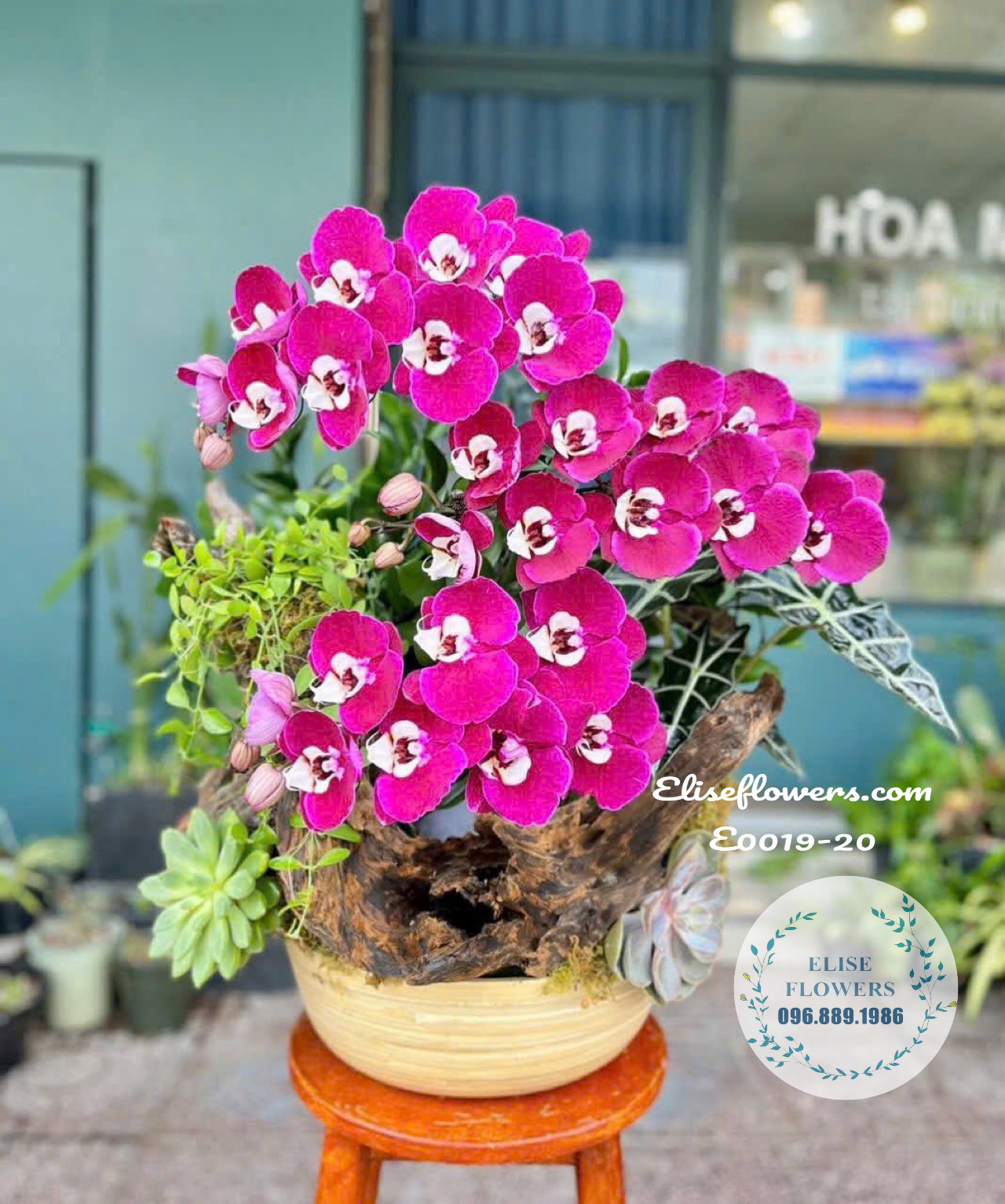 Chậu Lan Hồ Điệp Tím Ghép Lũa – Nét Độc Đáo Cho Quầy Lễ Tân, Sảnh Văn Phòng & Quà Tặng Đẳng Cấp Và Ý Nghĩa| Eliseflowers