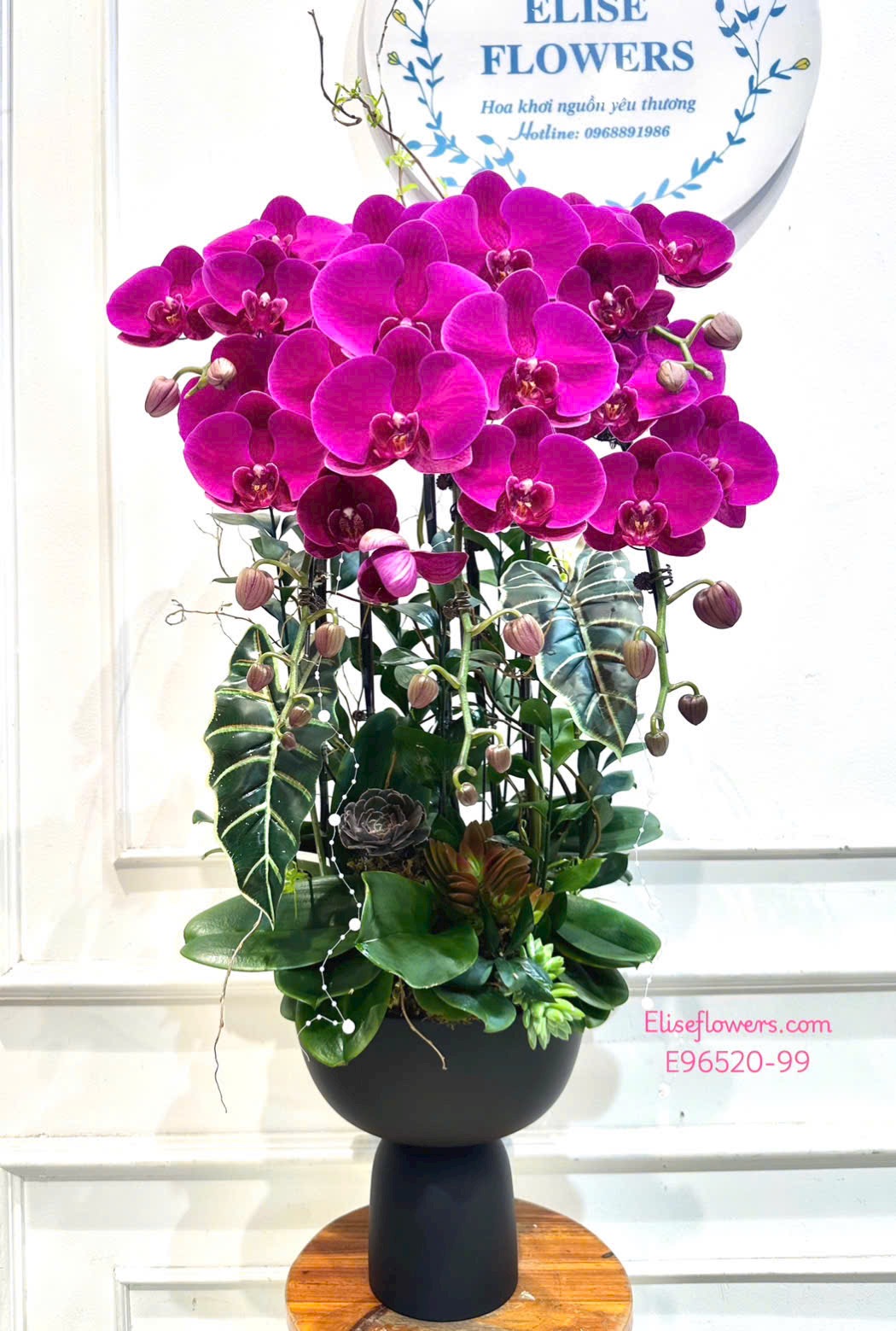 Lan hồ điệp Hà Nội. Chậu lan hò điệp tím tậng sếp cao cấp, sang trọng. Địa chỉ đặt mua hoa uy tín