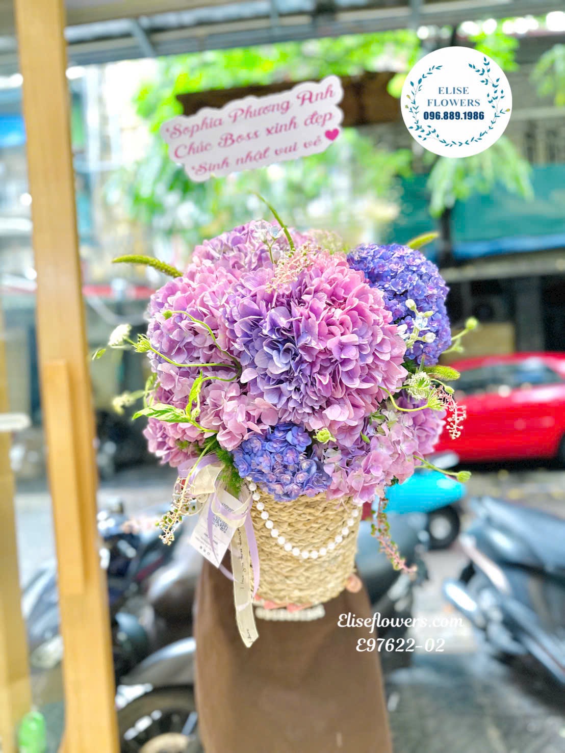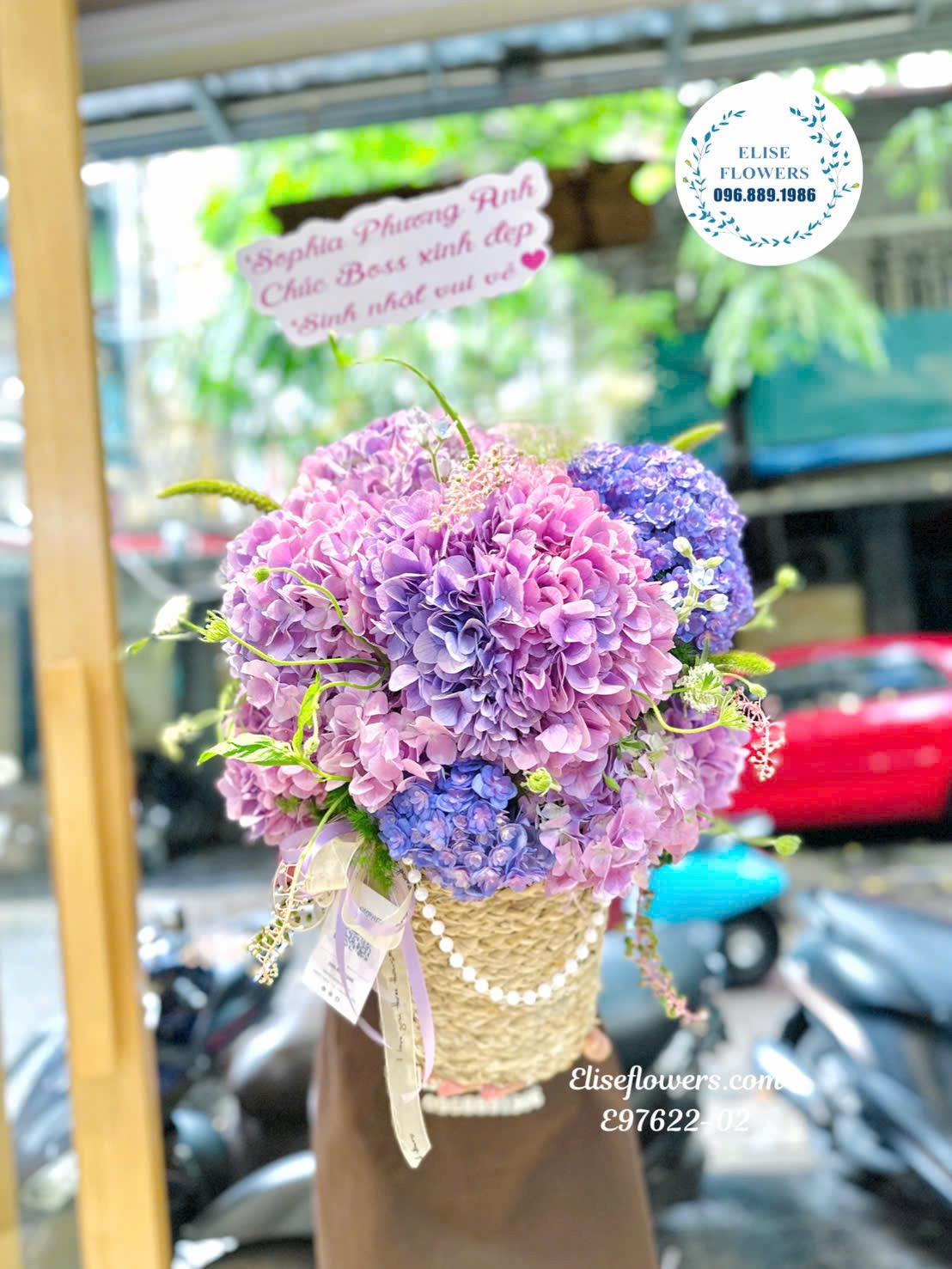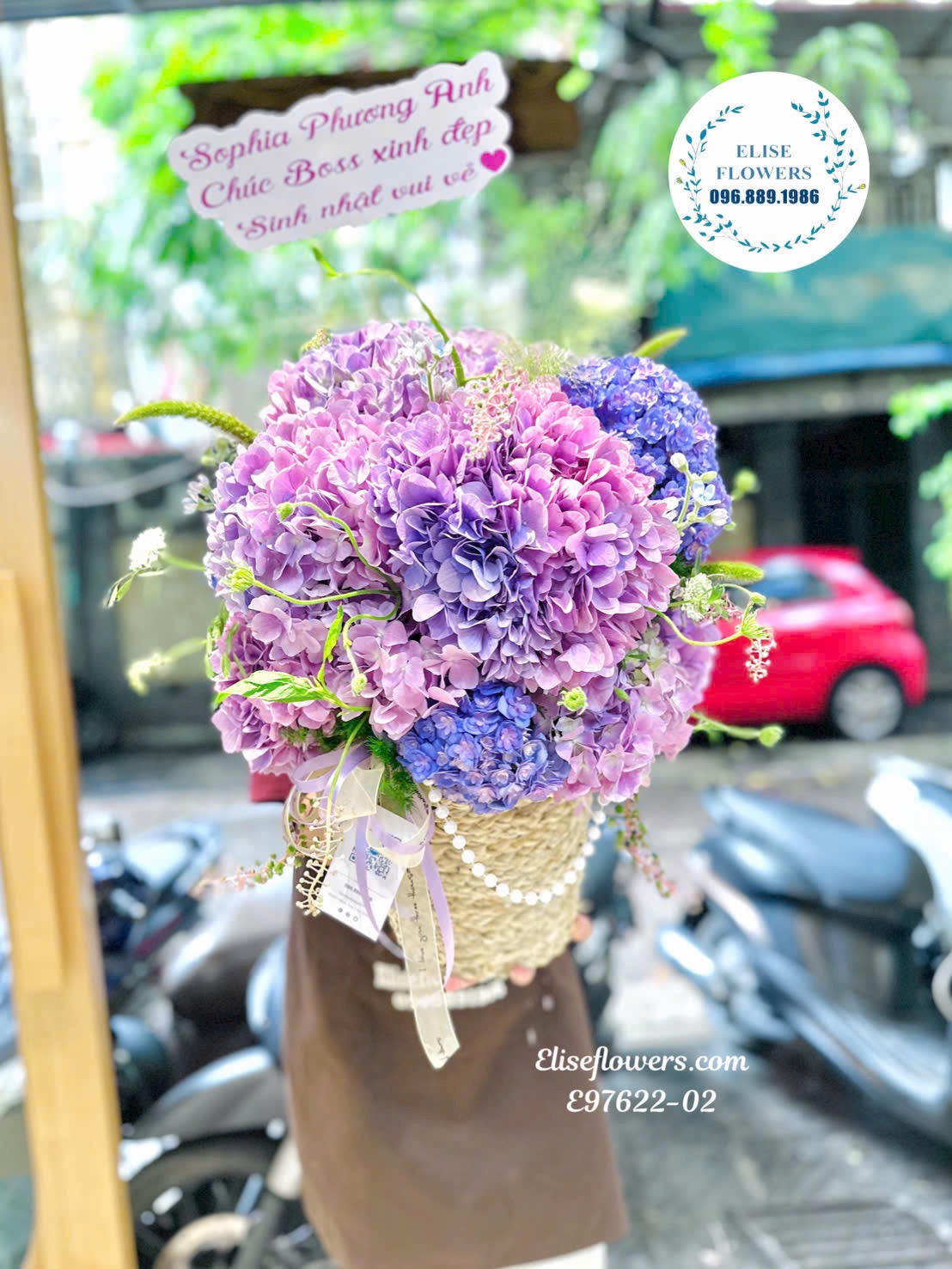 - Lẵng cẩm tú cầu xanh dương ở Cầu Giấy