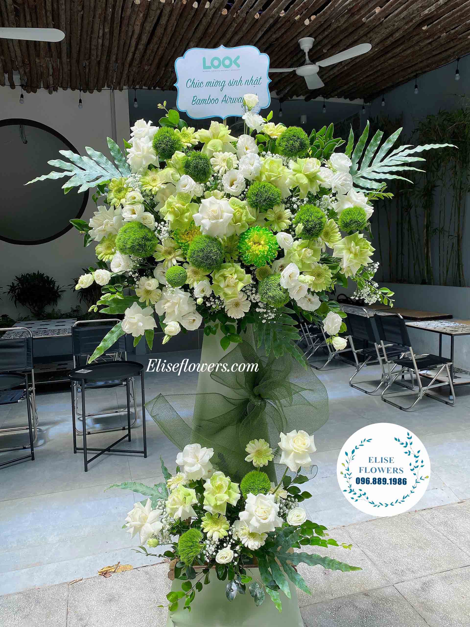 Để đặt lẵng hoa 2 tầng màu xanh lá đẹp sang trọng chúc mừng sự kiện, hội nghị, hội thảo,... quý khách vui lòng liên hệ 0945891986 or 0968891986. Đội ngũ nhân viên Elise sẽ nhanh chóng phản hồi, hỗ trợ tư vấn giúp khách hàng chọn được mẫu hoa ưng ý nhất, lên đơn và giao hoa tận nơi sớm nhất!!!