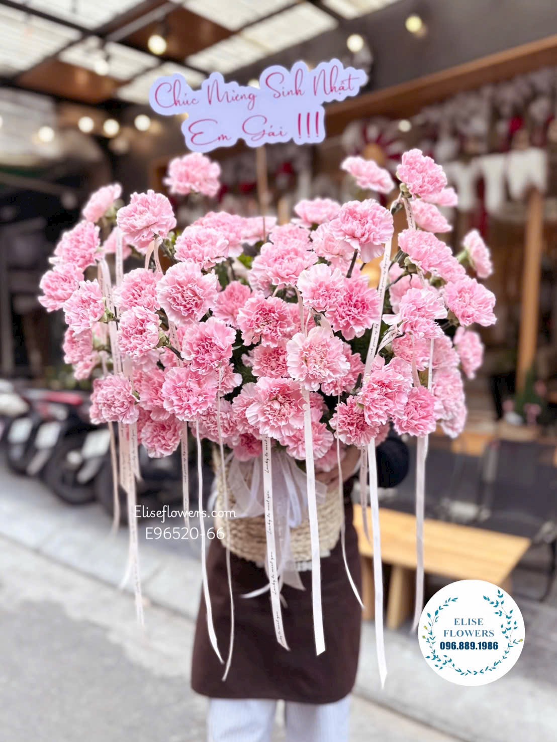 Đặt mua lẵng hoa Cẩm Chướng hồng phong cách Hàn Quốc sang trọng tặng sinh nhật em gái, bạn gái tại Eliseflowers. Mẫu giỏ hoa hồng pastel tinh tế, hoa nhập khẩu tươi lâu, giao nhanh hỏa tốc 2h tại Hà Nội. Hotline 0968891986. Điện hoa tươi Eliseflowers
