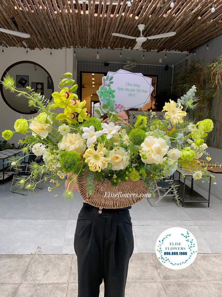Lẵng hoa xanh lá đẹp cao cấp tặng sinh nhật sếp | Giỏ hoa đẹp bay bổng ở Hà Nội