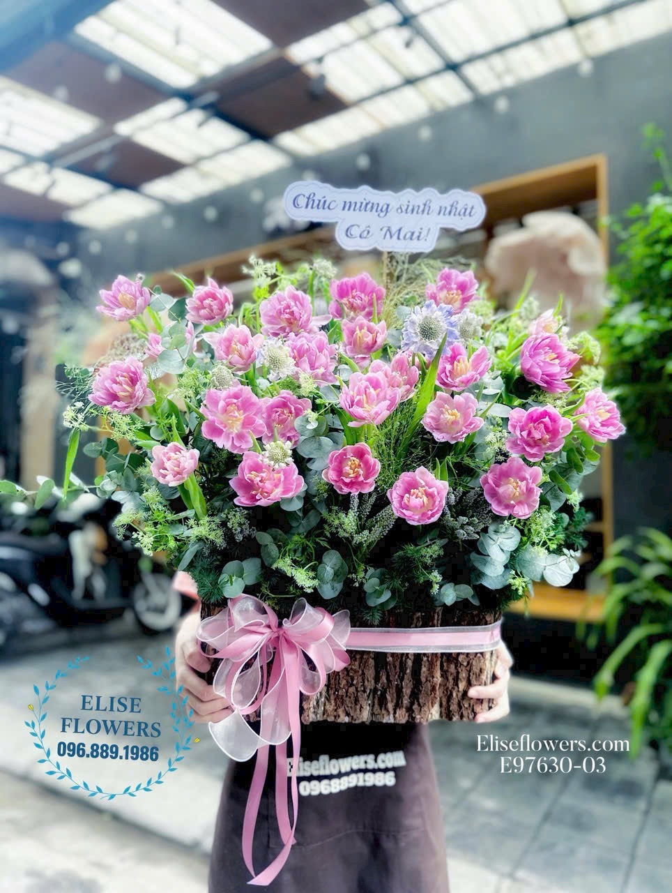 Lẵng Tulip kép tím sang trọng chúc mừng Sếp nữ. Shop hoa tươi Hà Nội - Eliseflowers