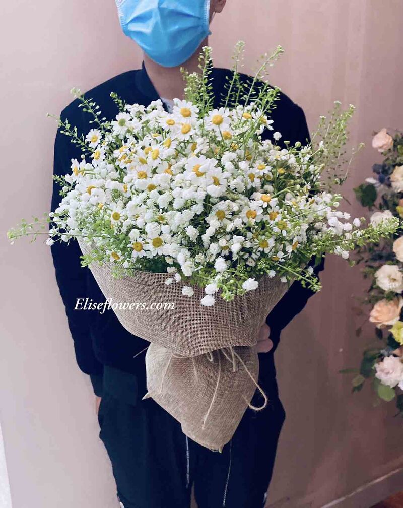 Bó hoa cúc tana mix baby trắng tặng bạn gái. Đặt mua bó hoa tặng bạn gái