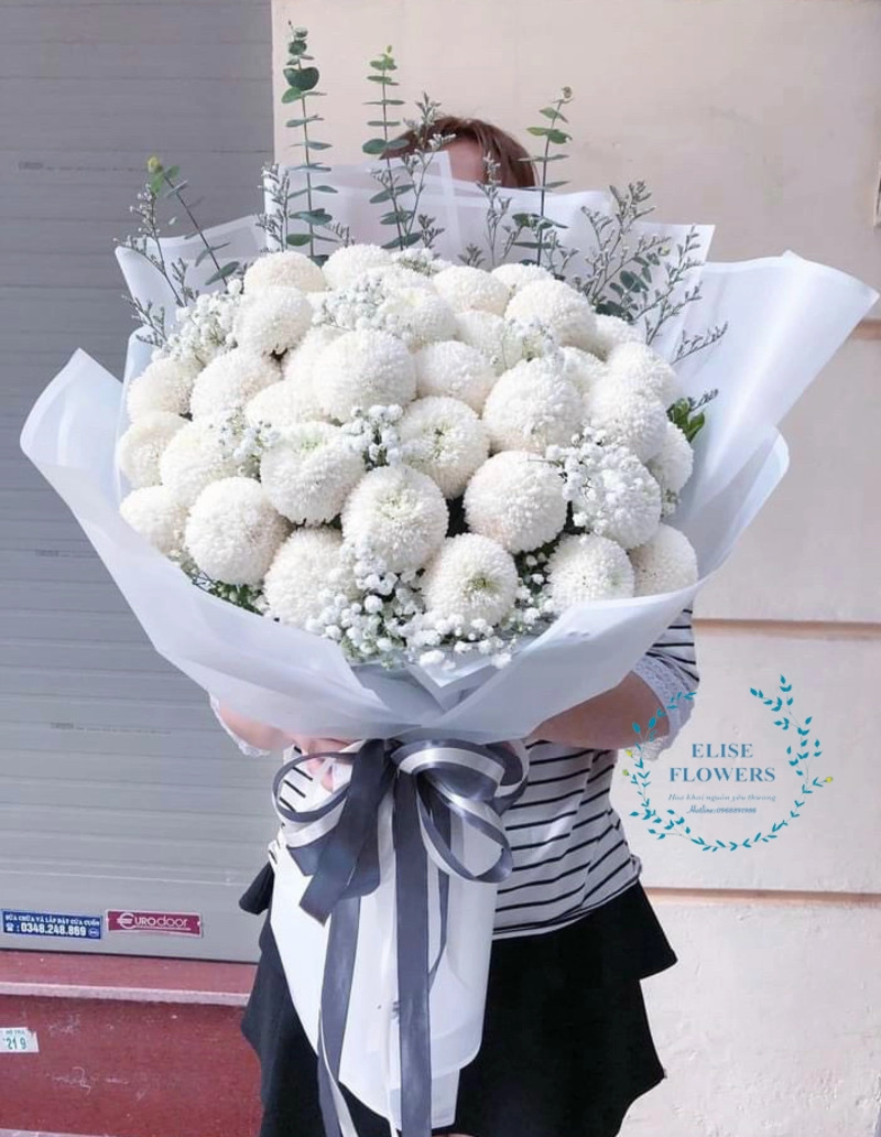 Mỗi khách hàng đều nhận được ưu đãi hấp dẫn khi mua hoa tươi màu trắng tại Elise Flowers: