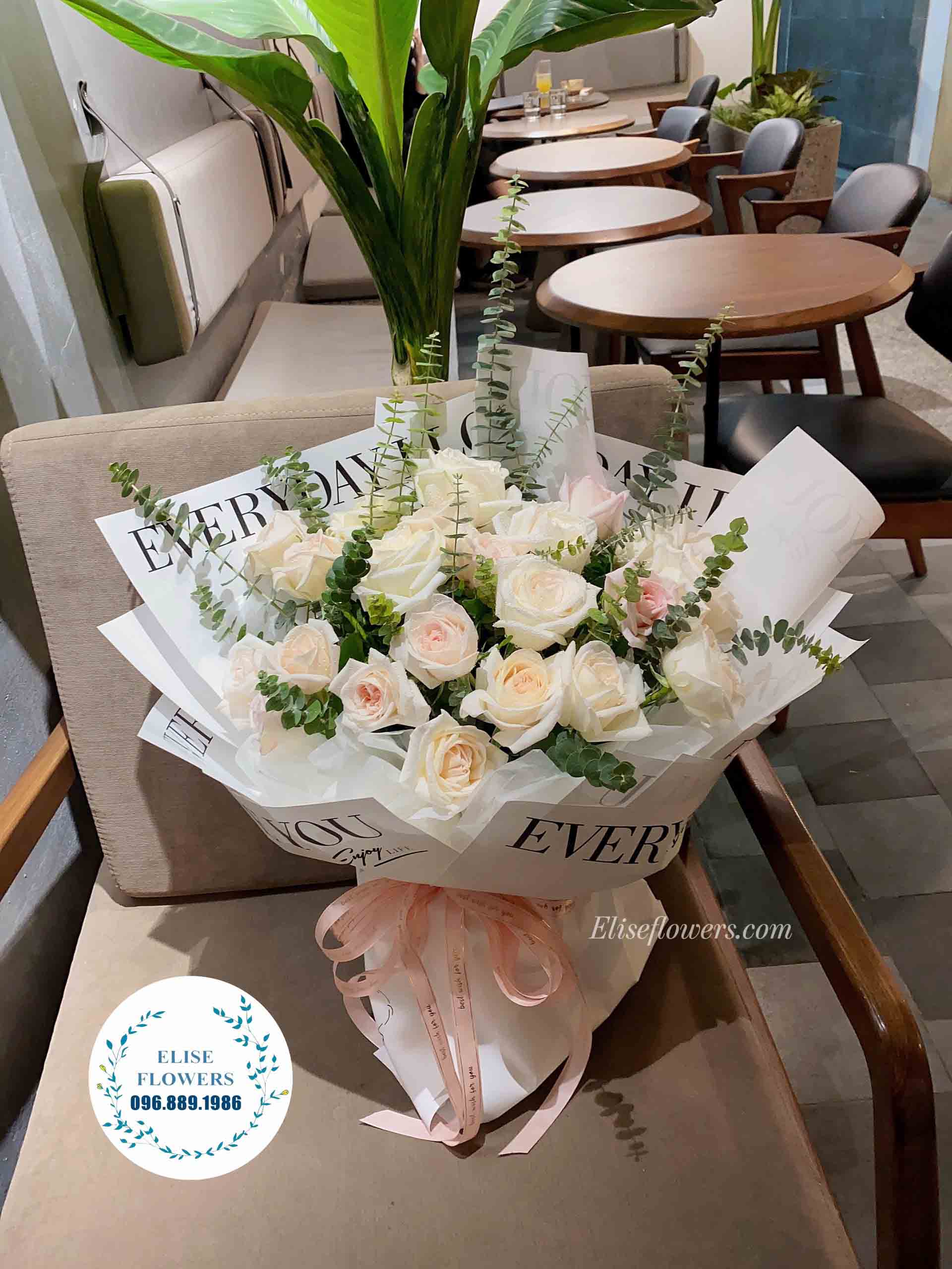 Bó hoa tươi Hà Nội | Bó hoa hồng trắng đẹp tinh tế, trong trẻo, thuần khiết | Bó hoa chúc mừng sinh nhật bạn gái, người yêu, người thương | Hoa sinh nhật đẹp tại quận Hà Đông - Hà Nội | Điện hoa chúc mừng sinh nhật đẹp tại EliseFlowers - Shop hoa uy tín tại Hà Nội