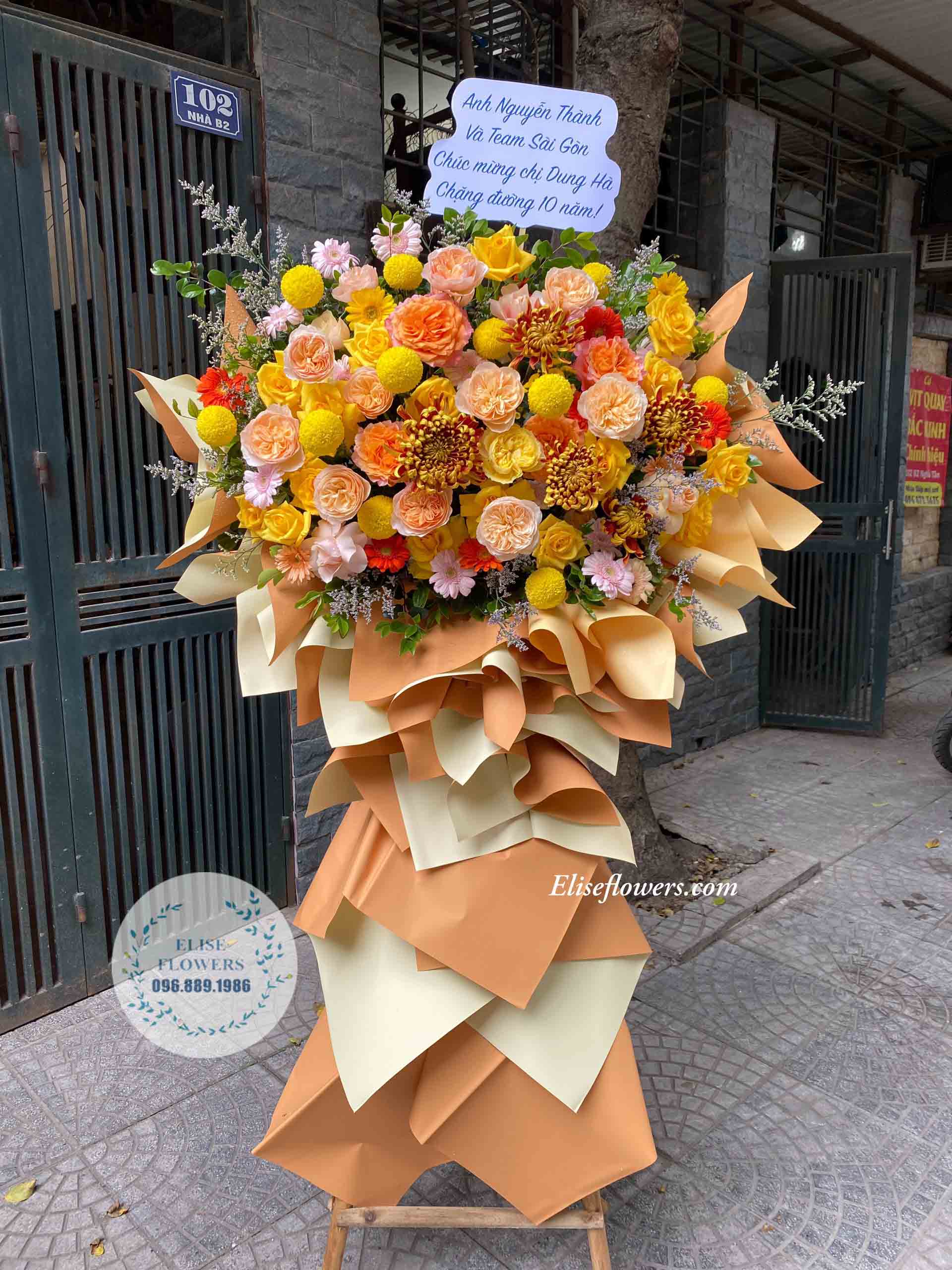 Cây hoa chúc mừng khai trương màu vàng đẹp tại Cầu Giấy Hà Nội - Eliseflowers.com